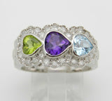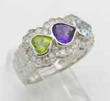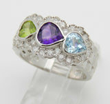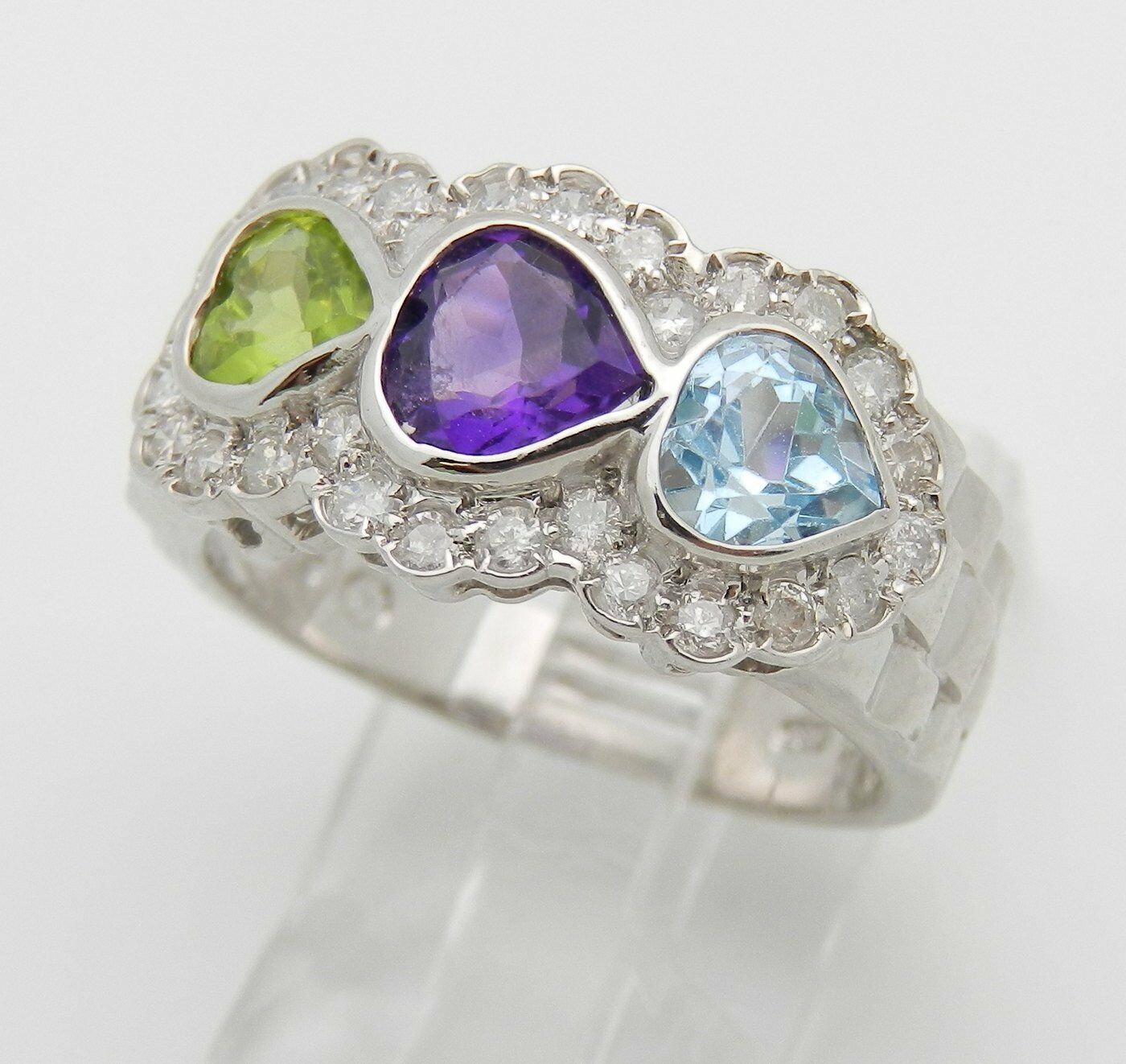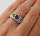 4ct Heart Cut Amethyst Peridot Aquamarine Engagement Ring 14k White Gold Finish