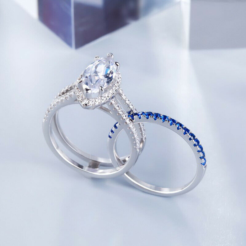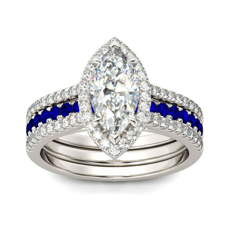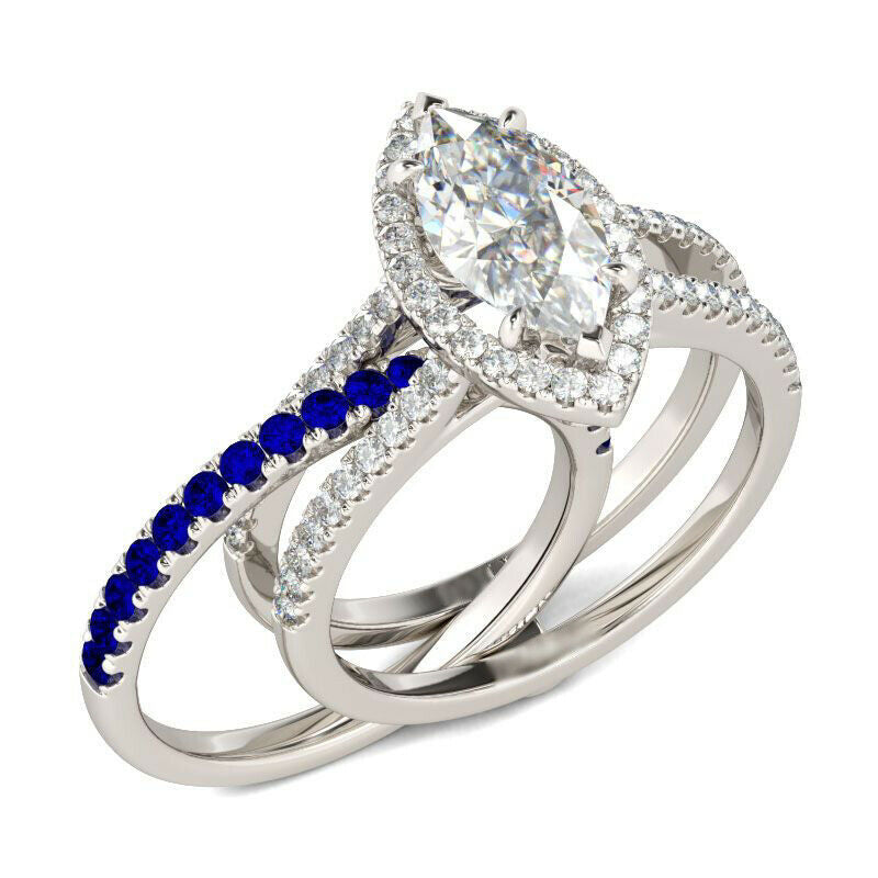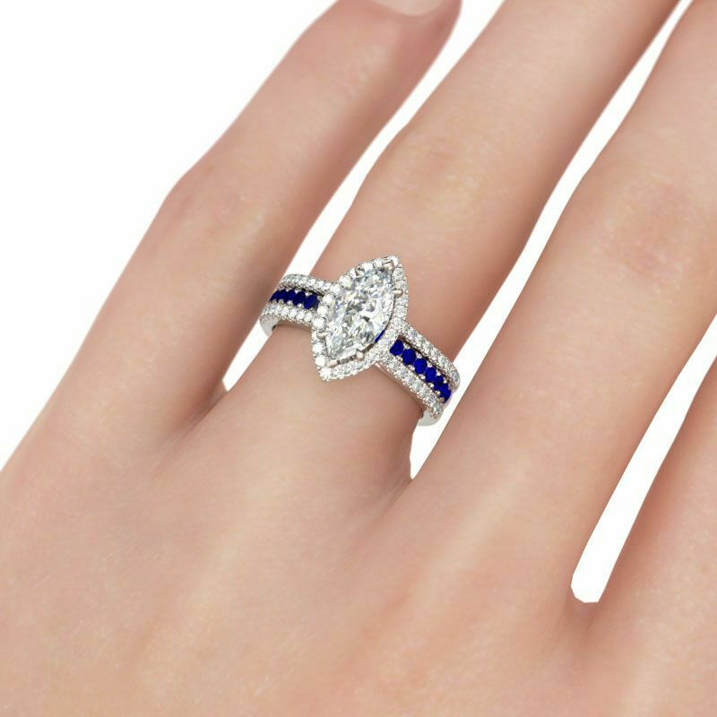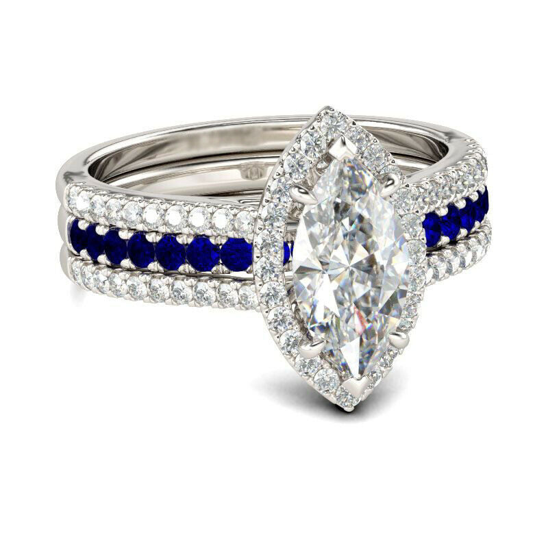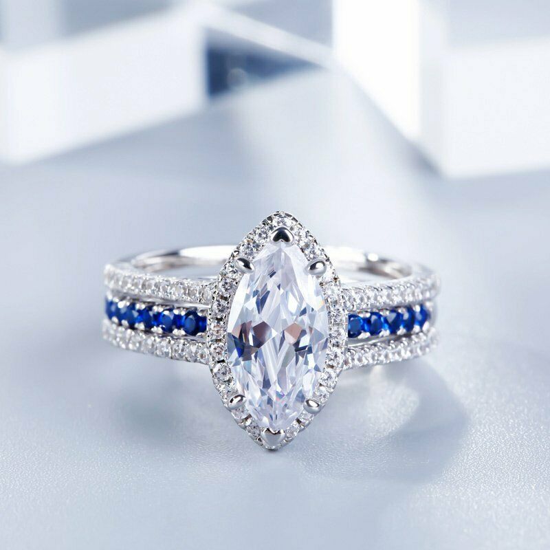 4Ct Marquise Cut Diamond Sapphire Unique Band Inside Ring 14K White Gold Finish