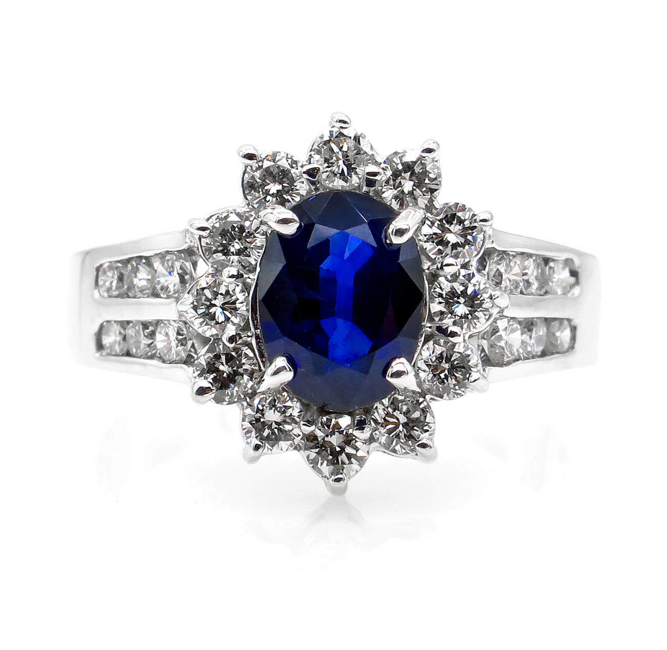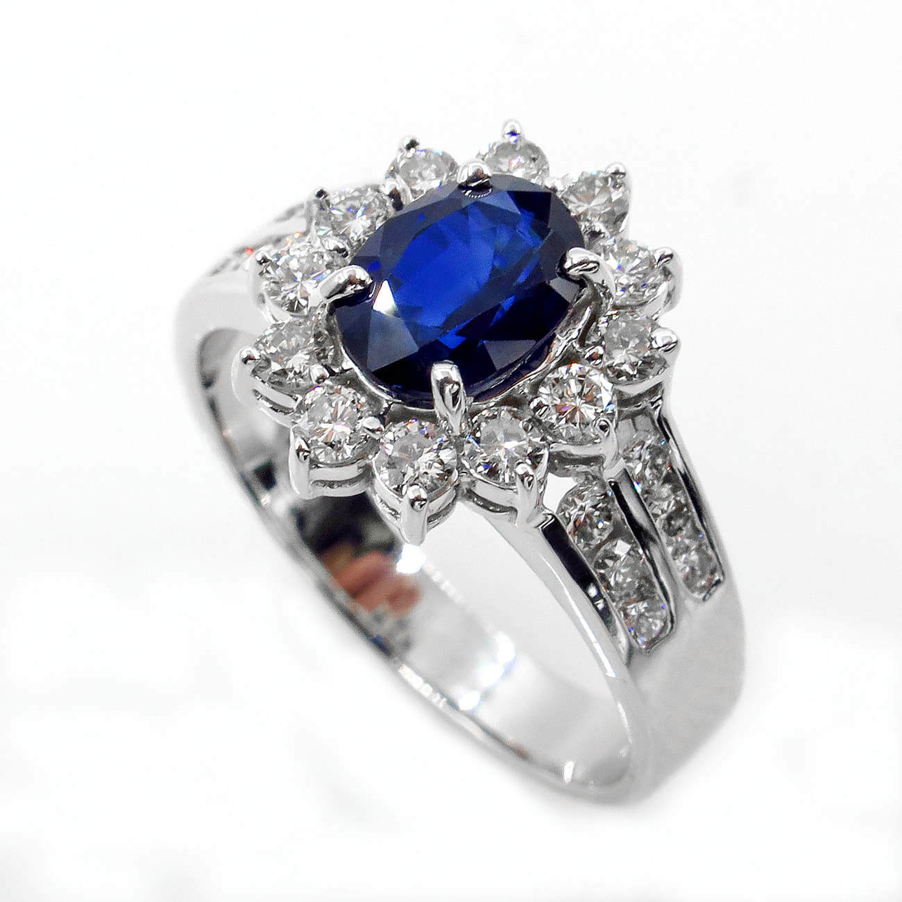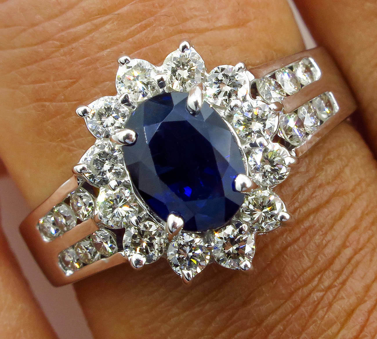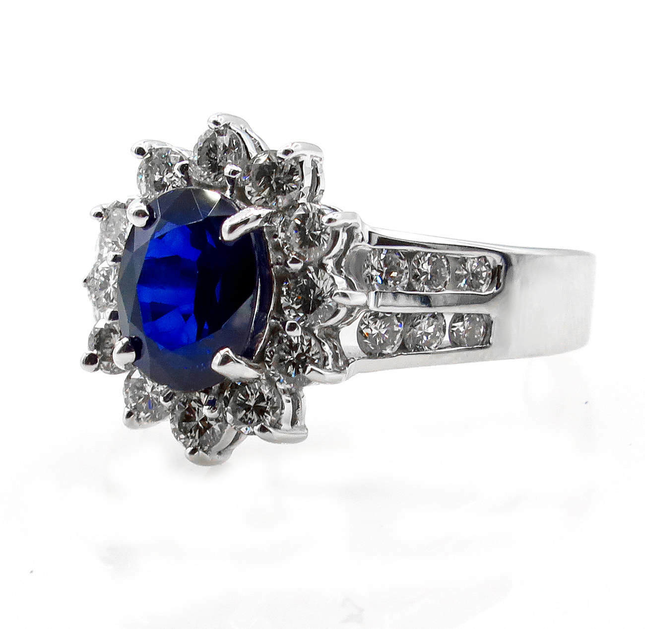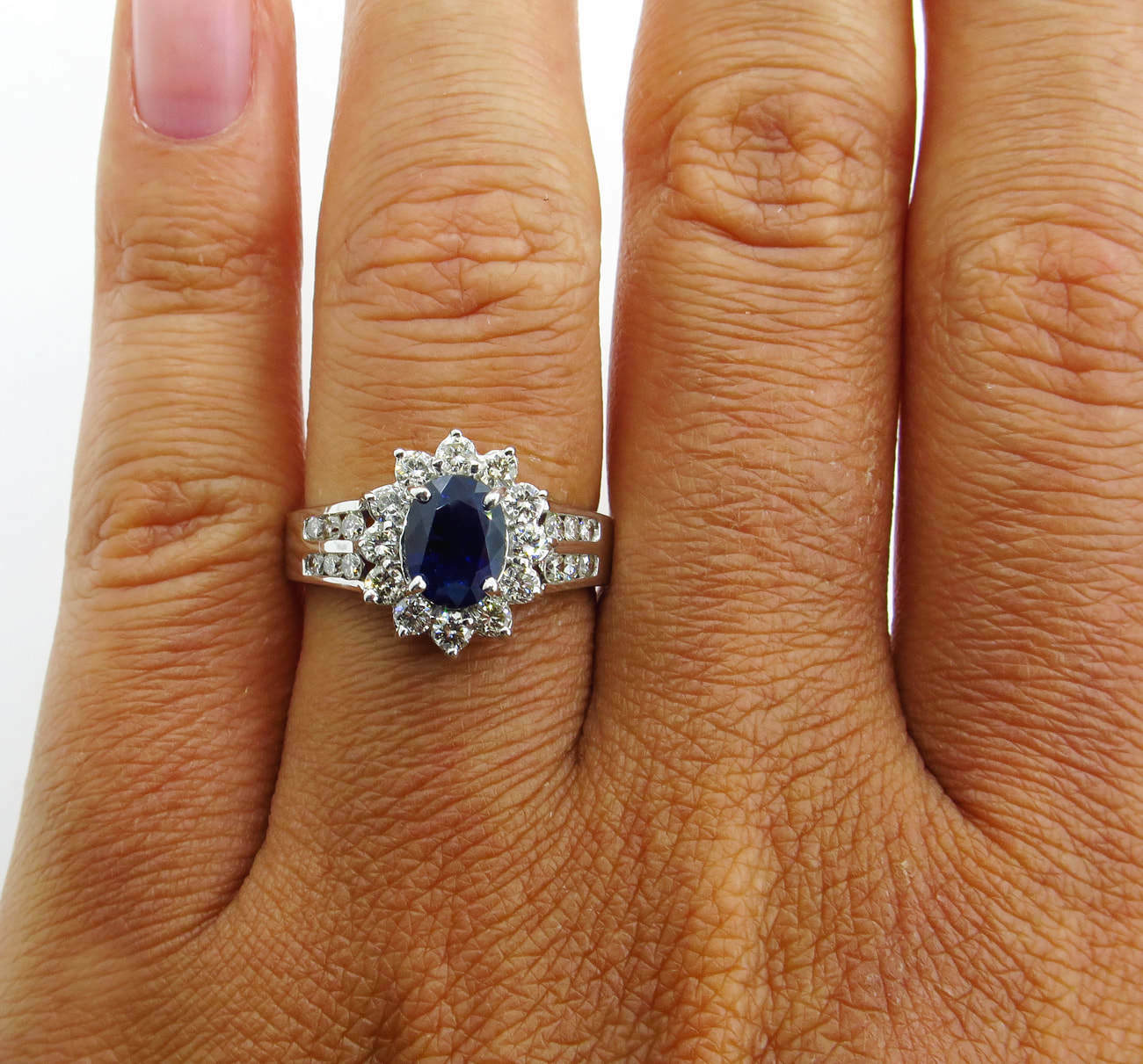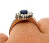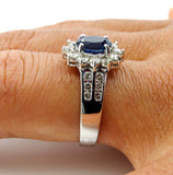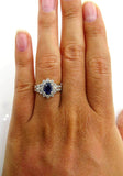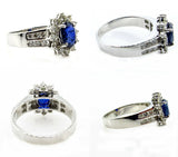 4Ct Oval Blue Sapphire Diamond Halo Floral Engagement Ring 14K White Gold Finish