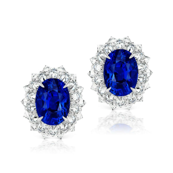 4Ct Oval Cut Blue Sapphire Inverted Diamonds Stud Earrings 14K White Gold Finish