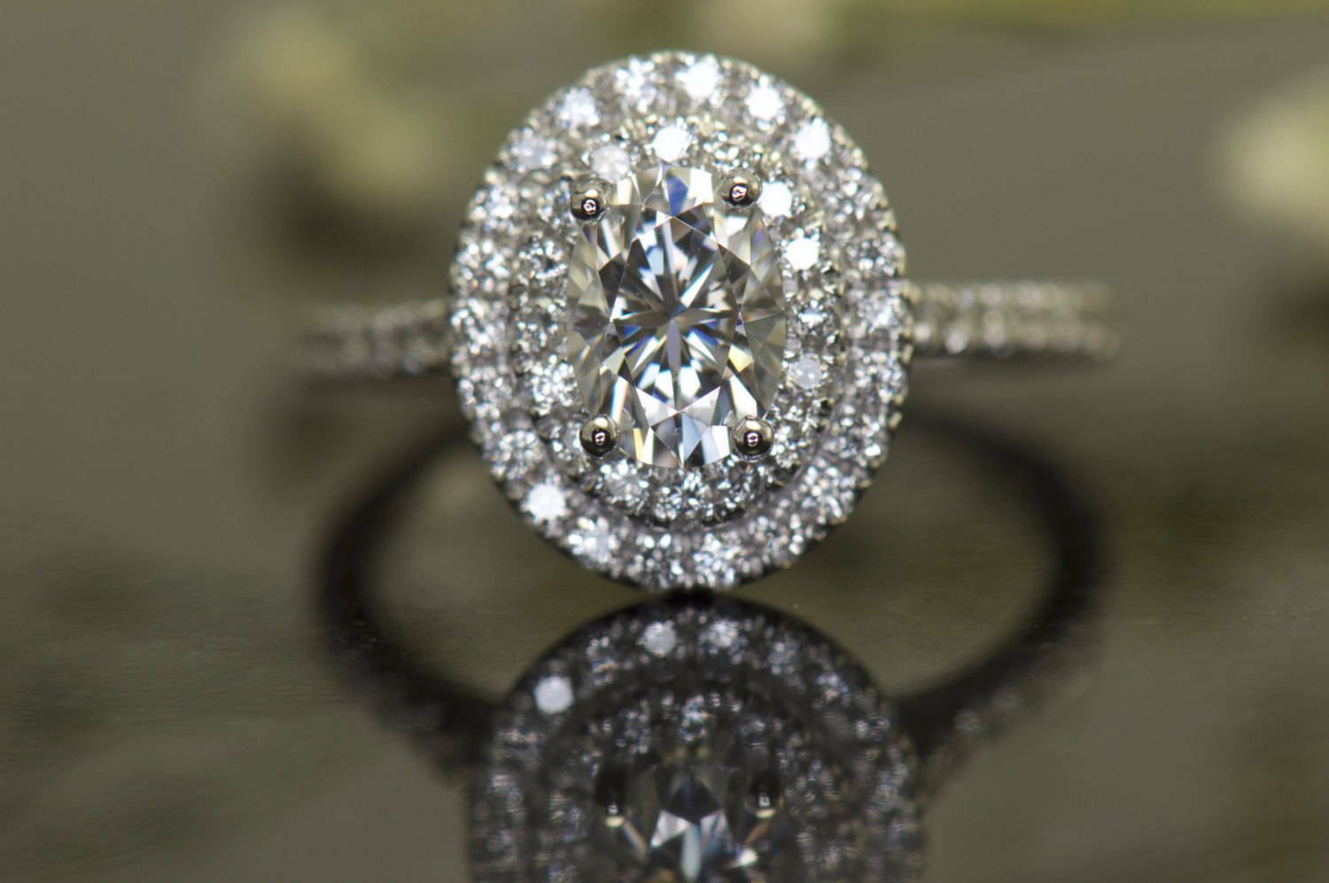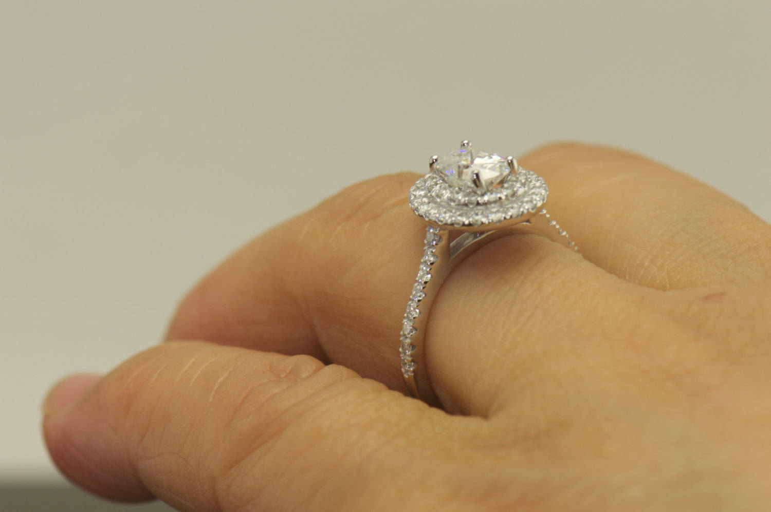 4Ct Oval Cut Diamond Solitaire Engagement Double Halo Ring 14K White Gold Finish
