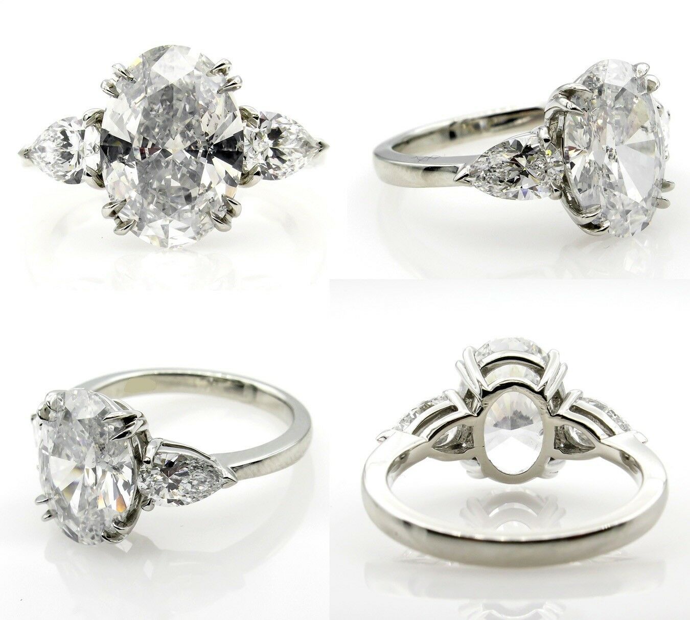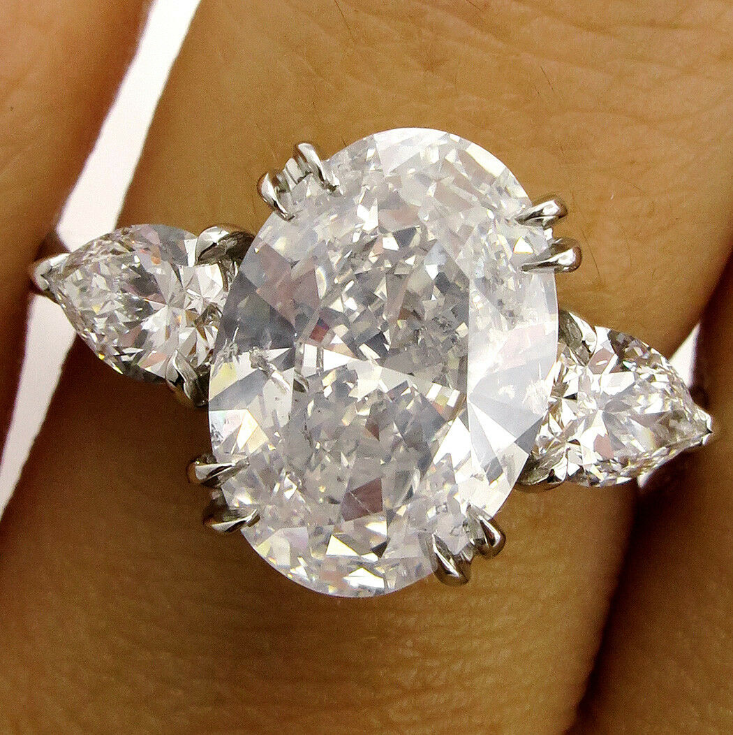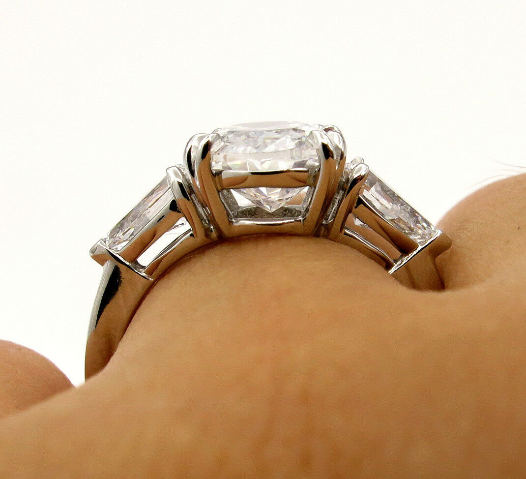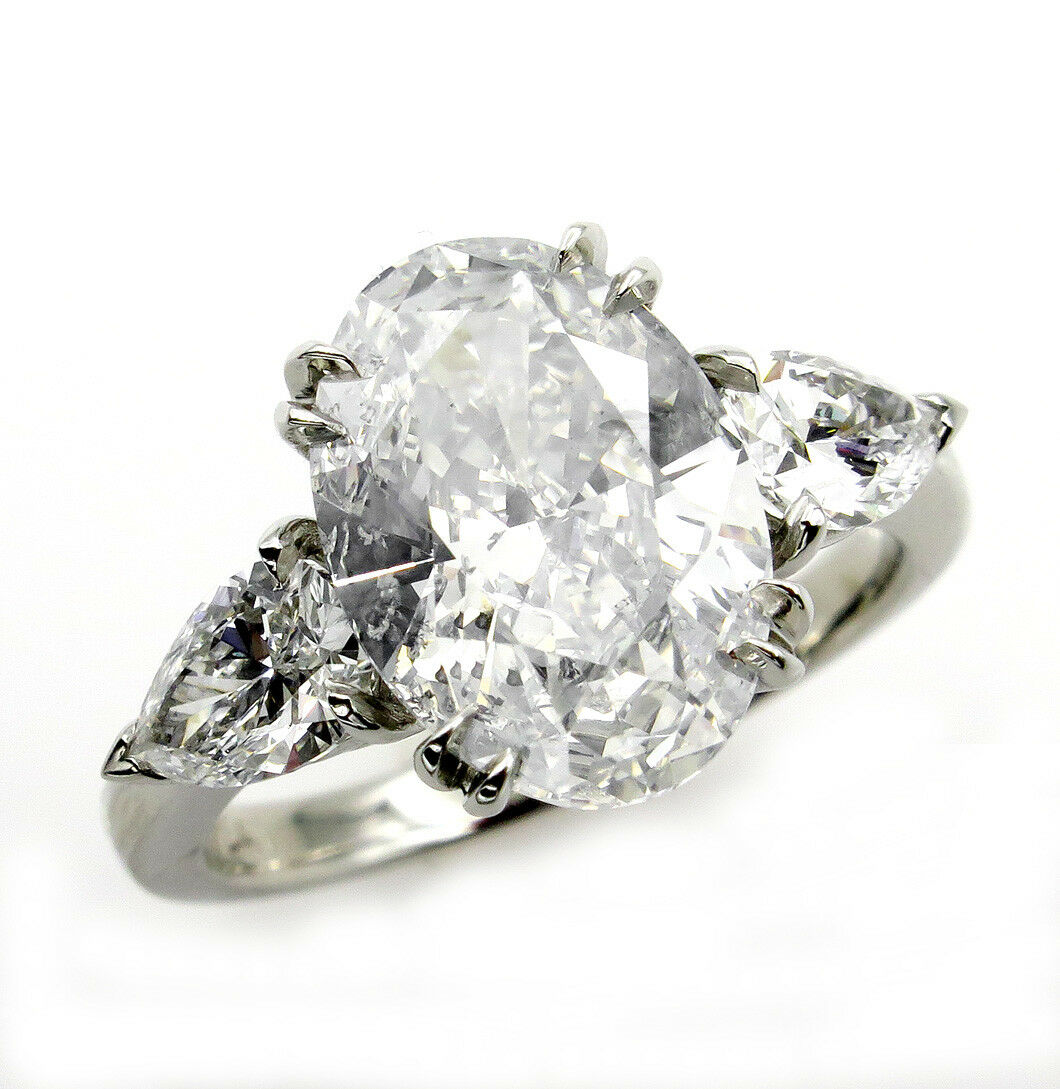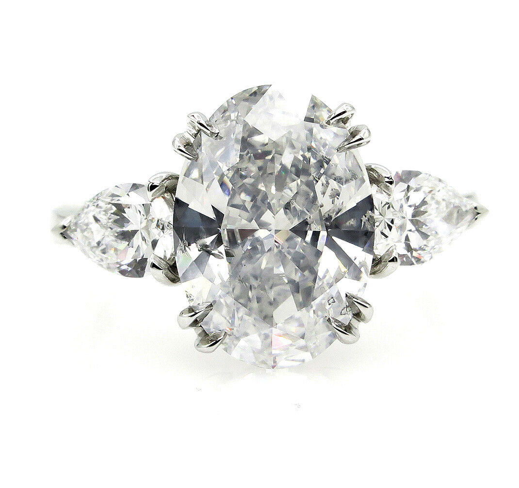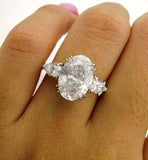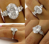 4Ct Oval Cut Diamond Trilogy Engagement Ring 14K White Gold Finish Pear Accents