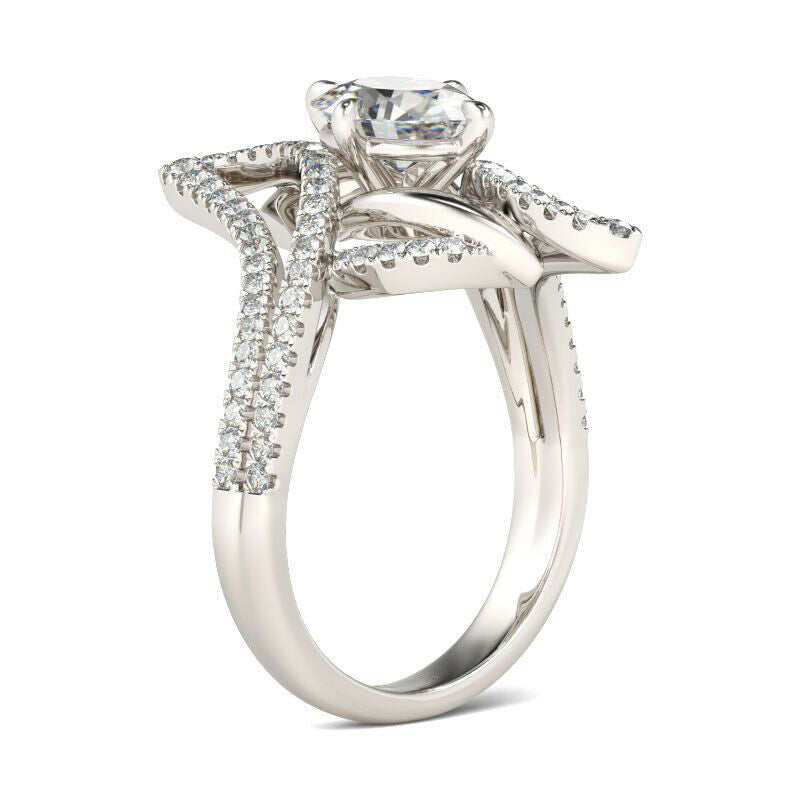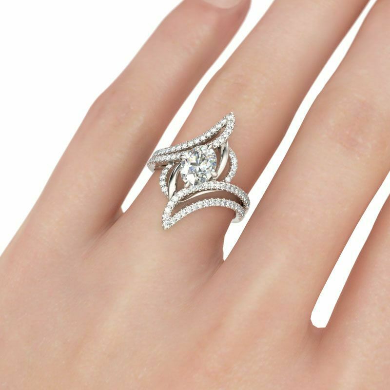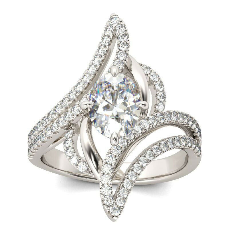 4Ct Oval Cut Diamond Unique Stylish Bypass Cocktail Ring 14K White Gold Finish