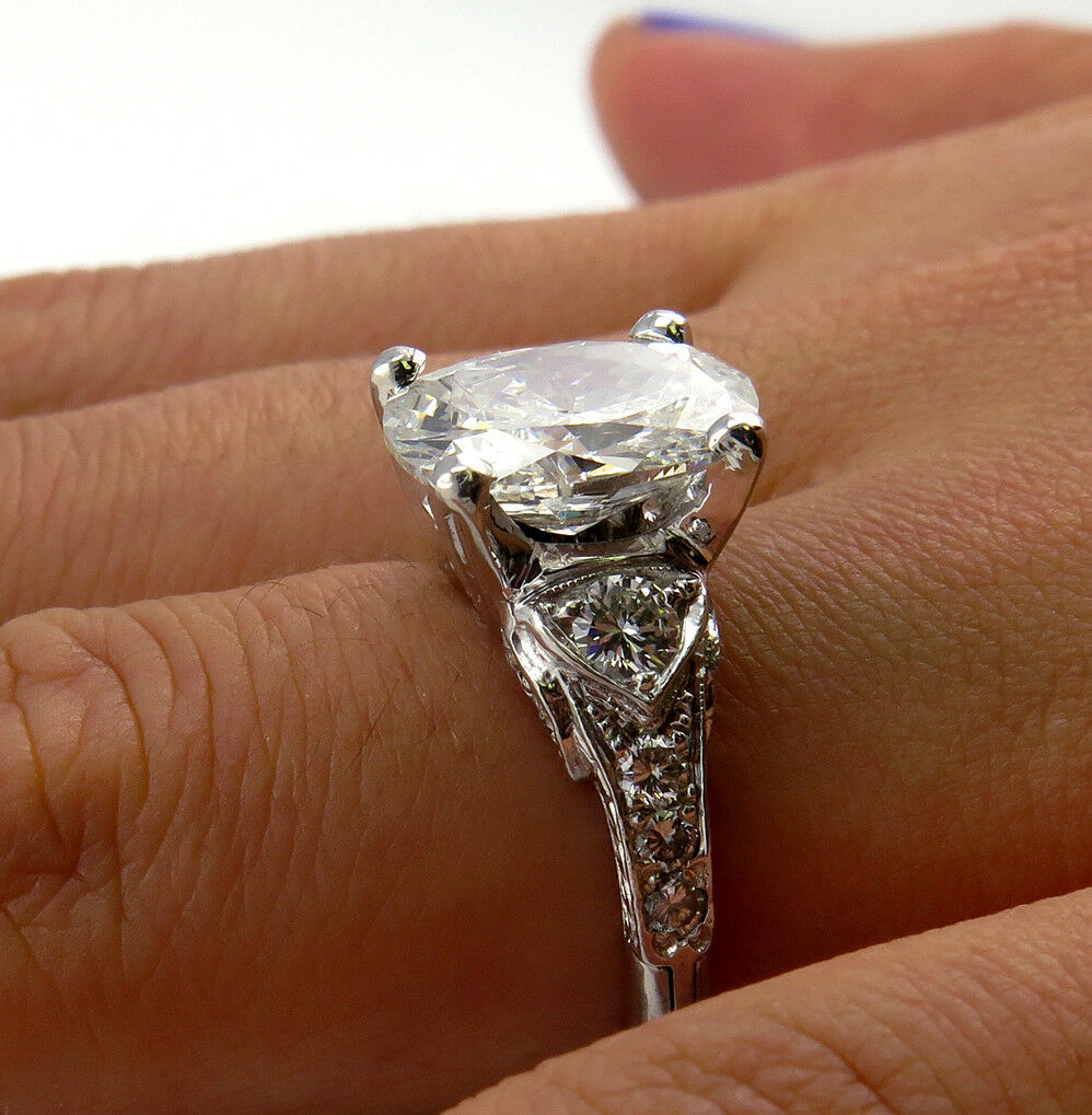4Ct Oval Cut Diamond Vintage Engagement Ring 14K White Gold Finish Round Accents