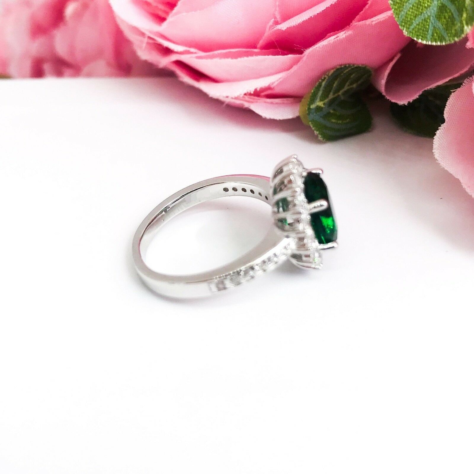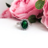4Ct Oval Green Emerald Diamond Accent Floral Solitaire Ring 14k White Gold Over