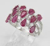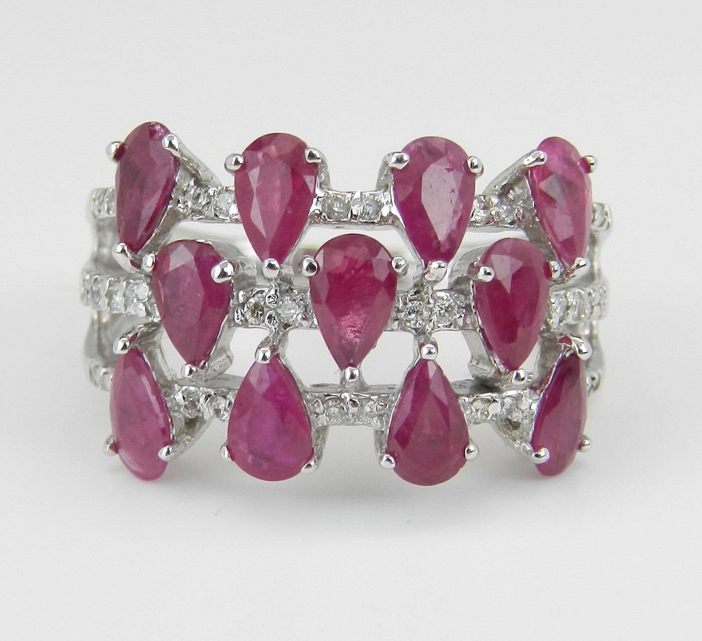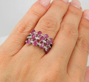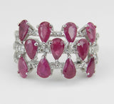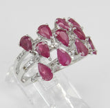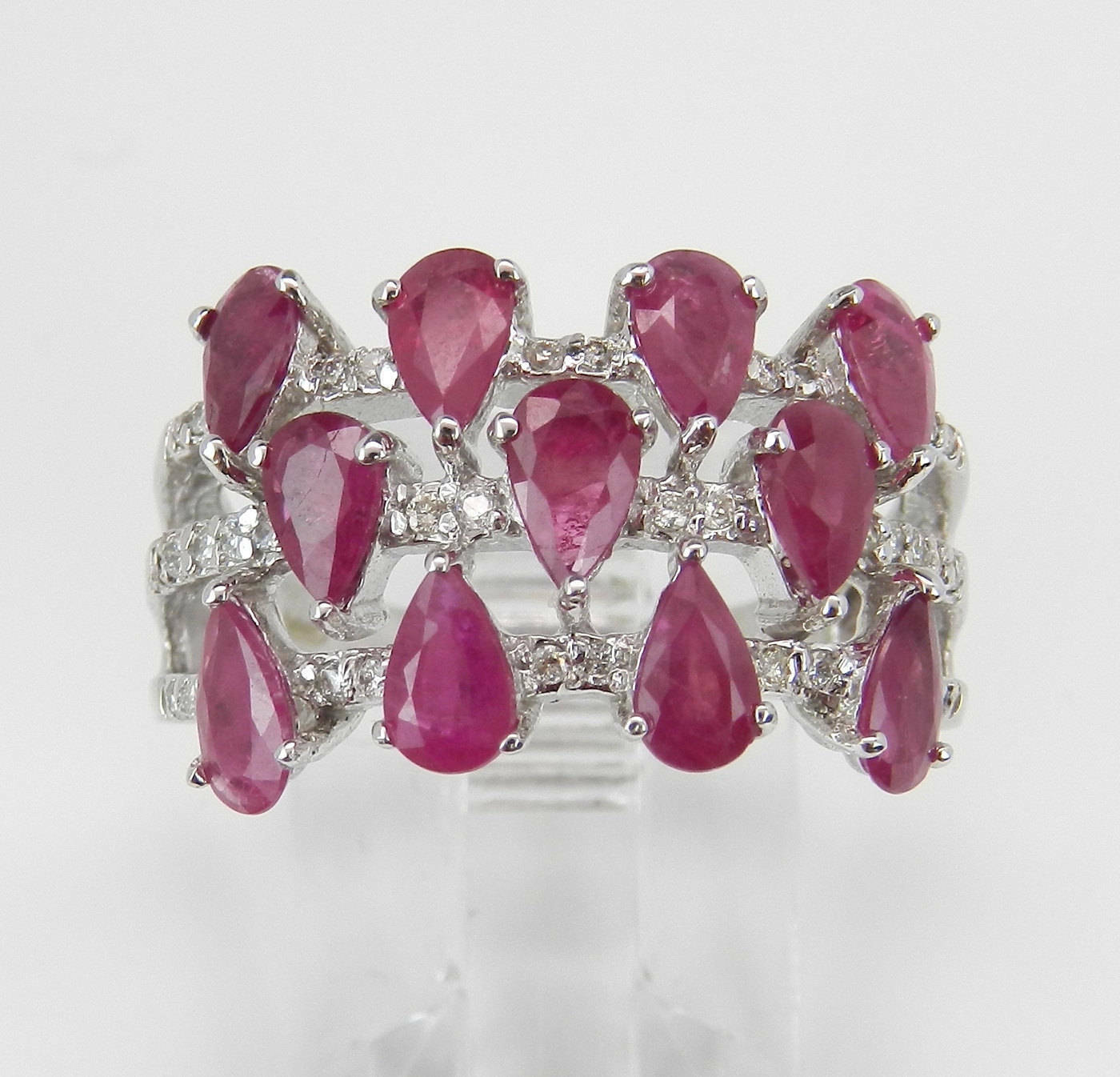 4ct Pear Cut Pink Ruby Diamond Wide Cocktail Engagement Ring 14k White Gold Over