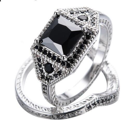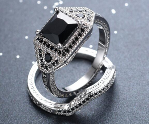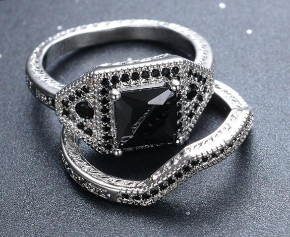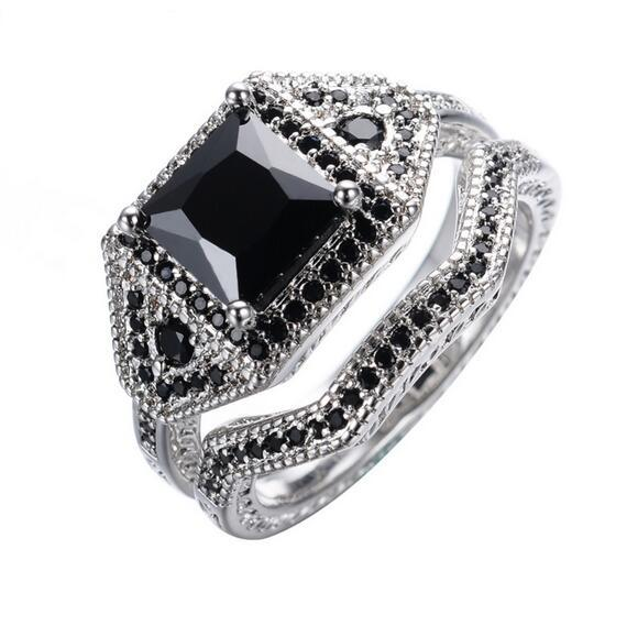4Ct Princess Black Diamond Bridal Set Halo Ring Twist Band 14K White Gold Finish