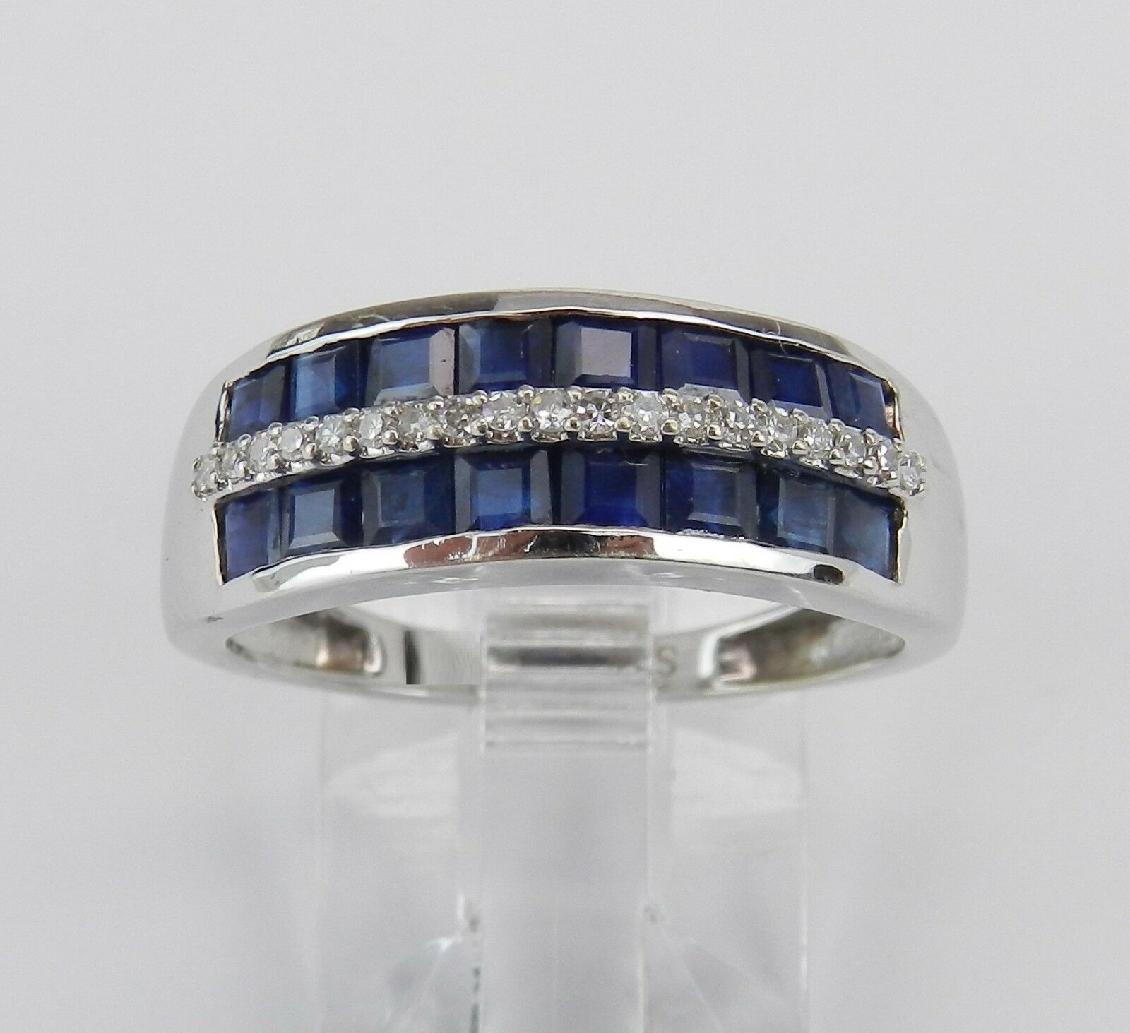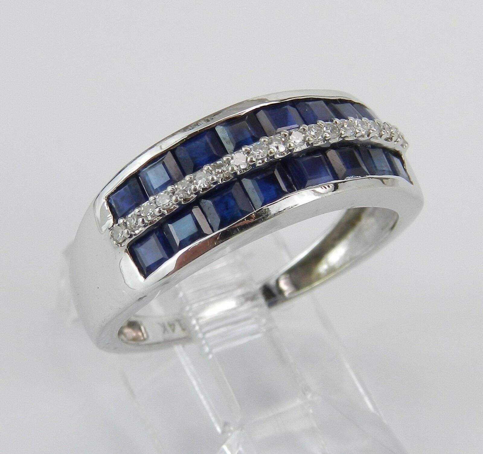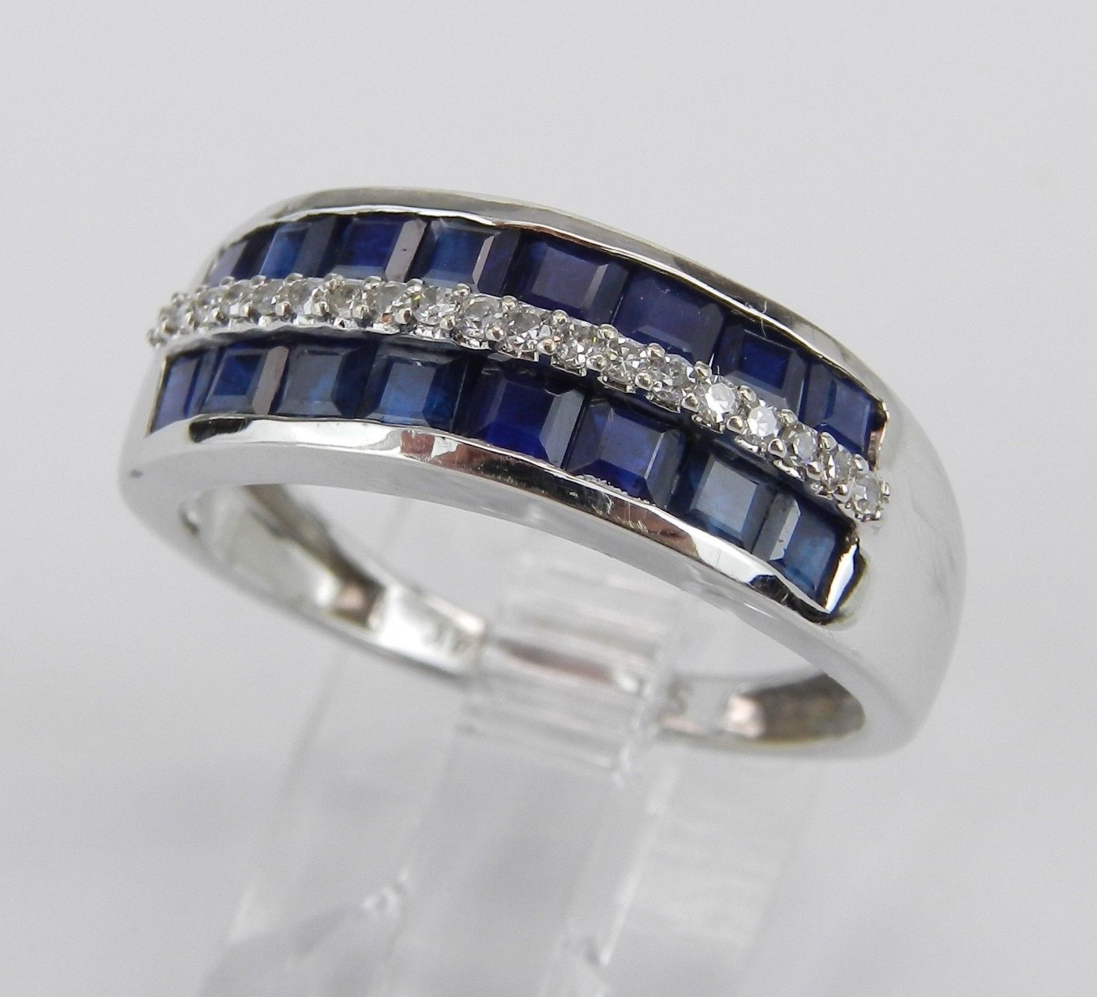 4ct Princess Cut Blue Sapphire Trendy Band Engagement Ring 14k White Gold Finish