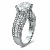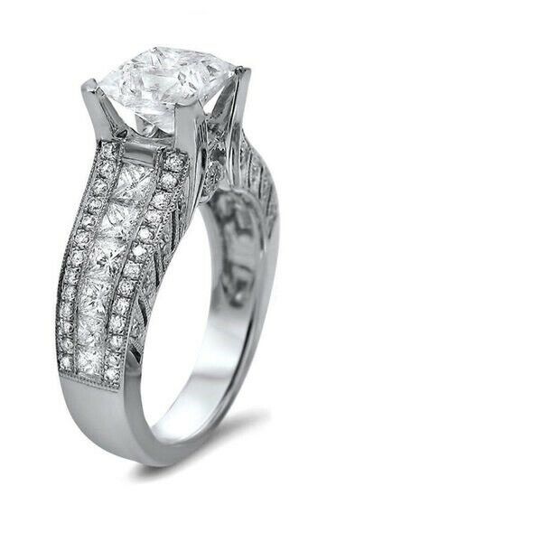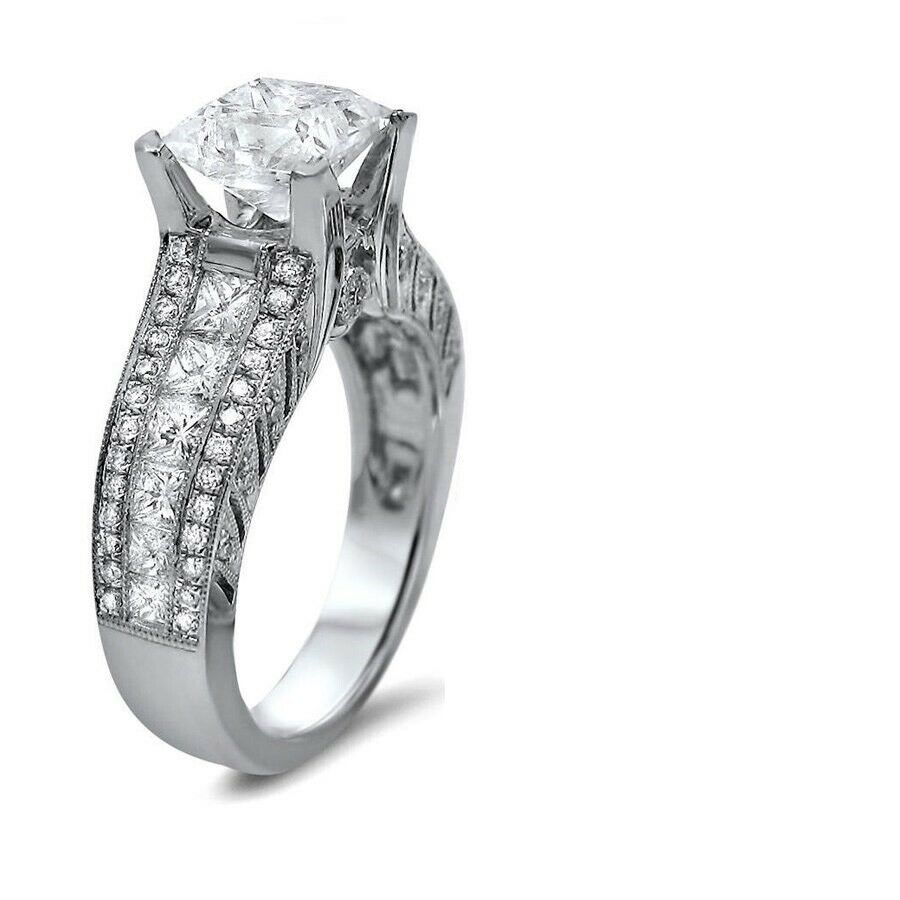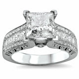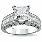 4Ct Princess Cut Diamond Vintage Solitaire with Accents Ring 14K White Gold Over