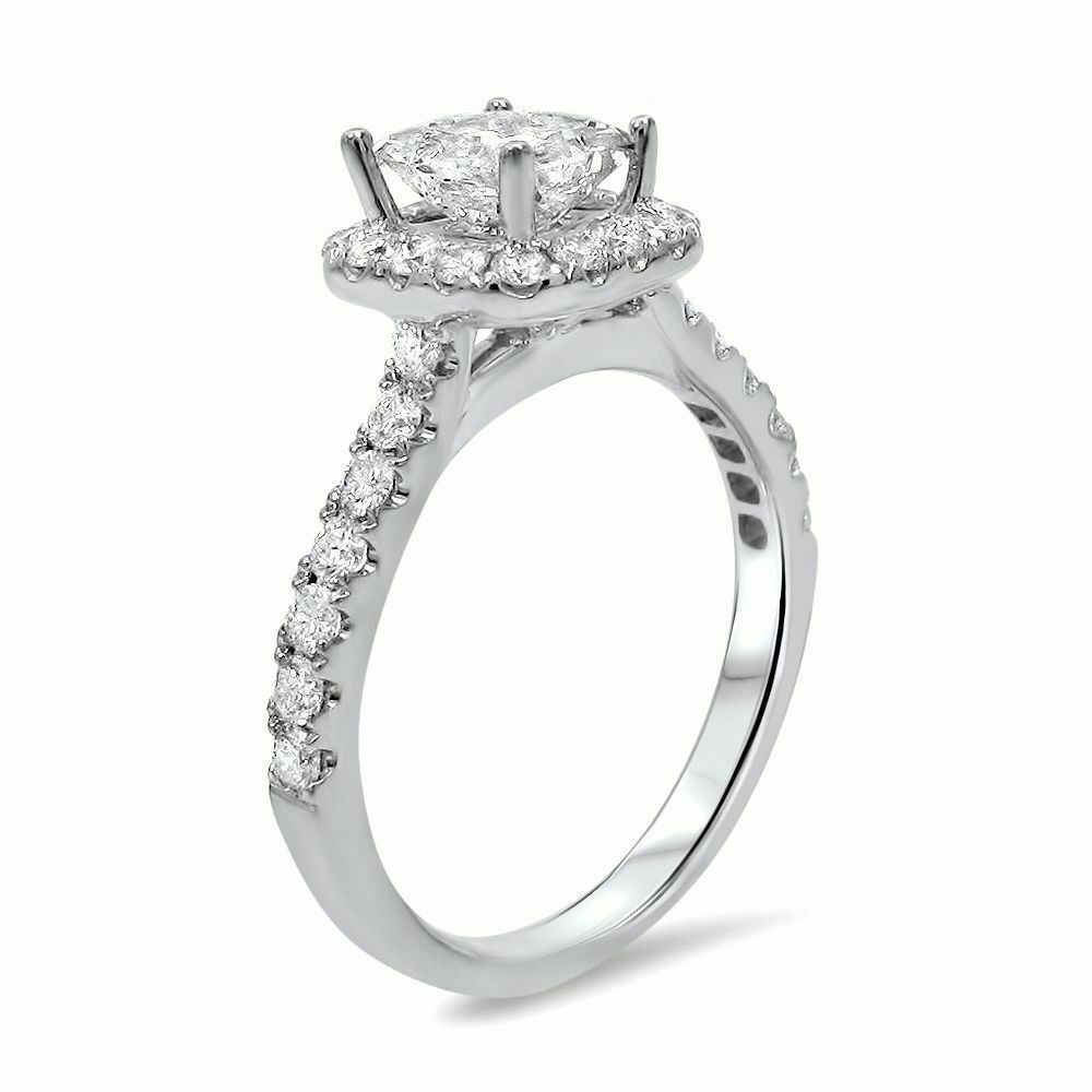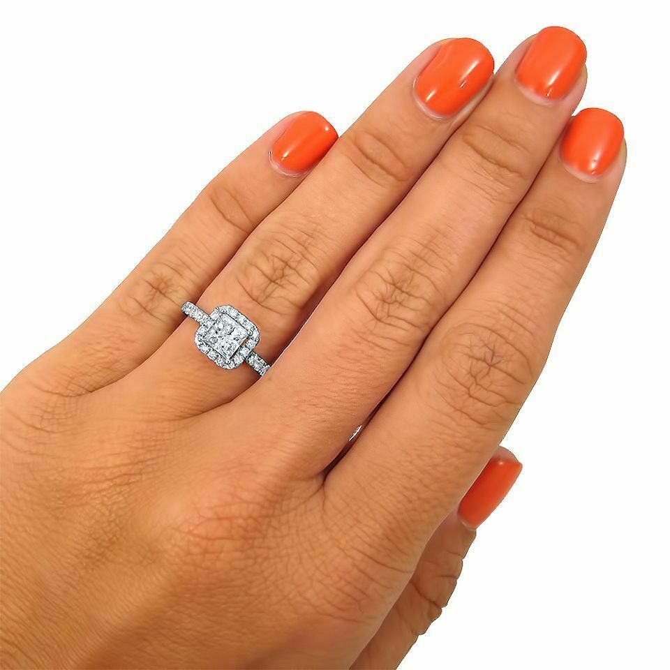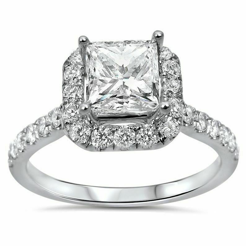 4Ct Princess Cut DVVS1 Diamond Halo Accent Engagement Ring 14K White Gold Finish