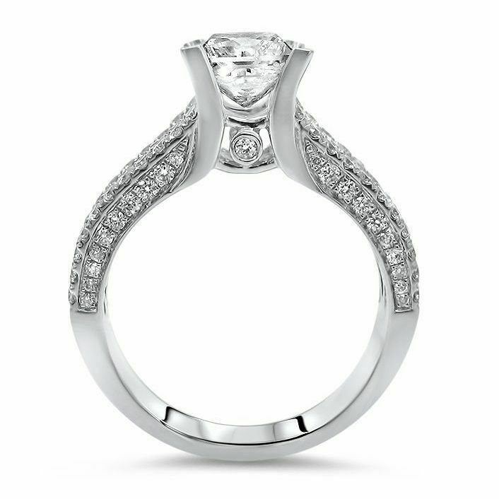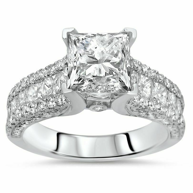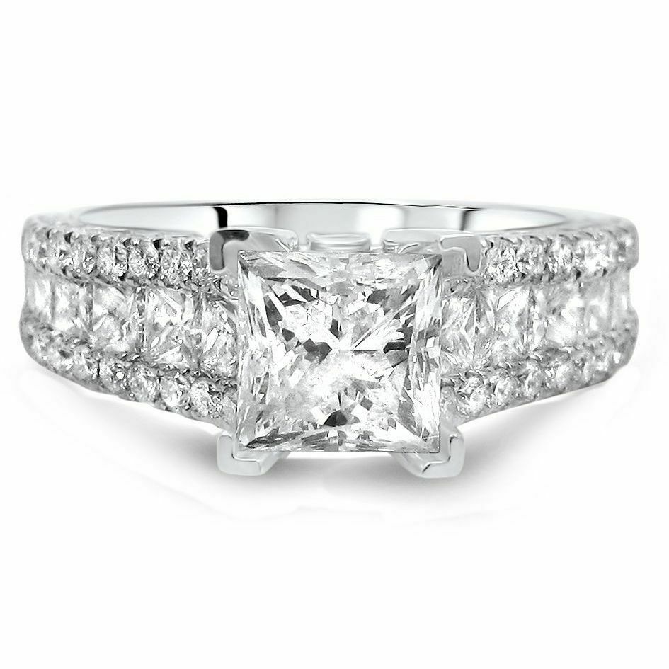4Ct Princess Cut DVVS1 Diamond Iced Accent Engagement Ring 14K White Gold Finish