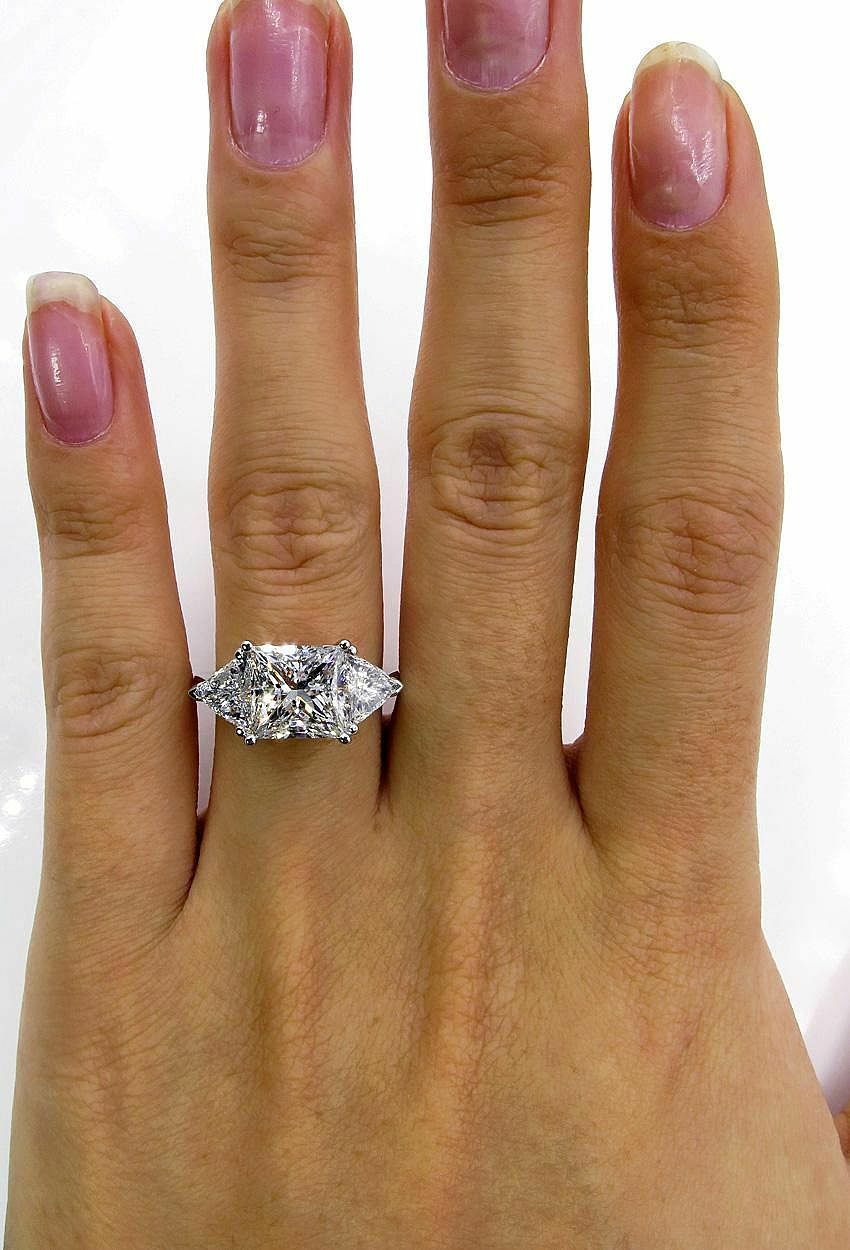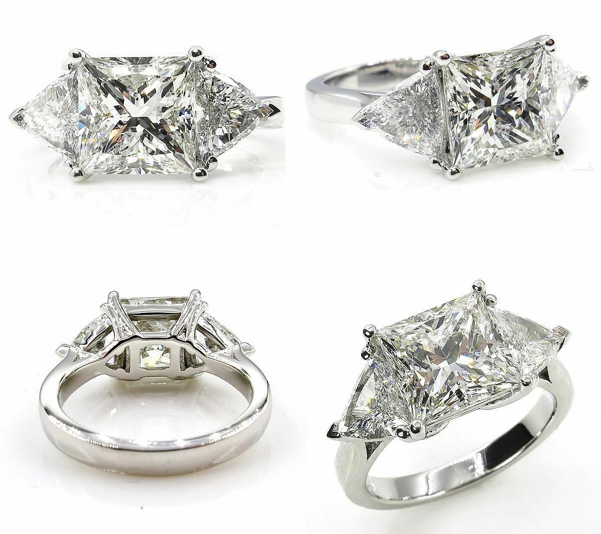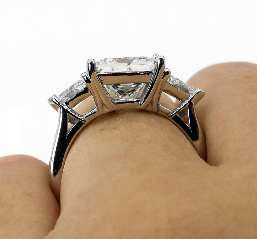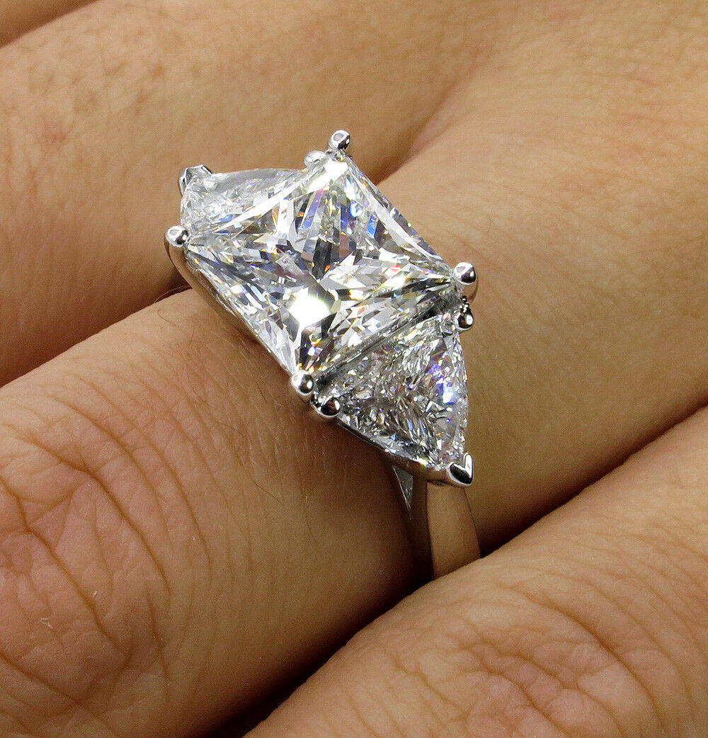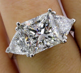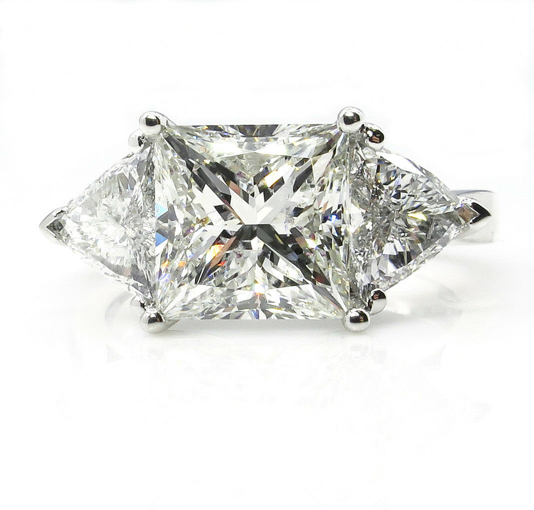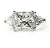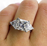 4Ct Princess Cut Trilogy Engagement Ring 14K White Gold Finish Trillion Accents