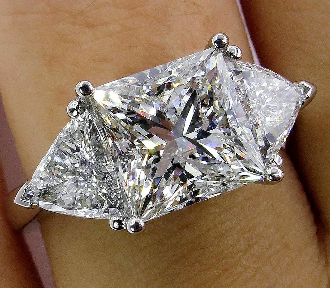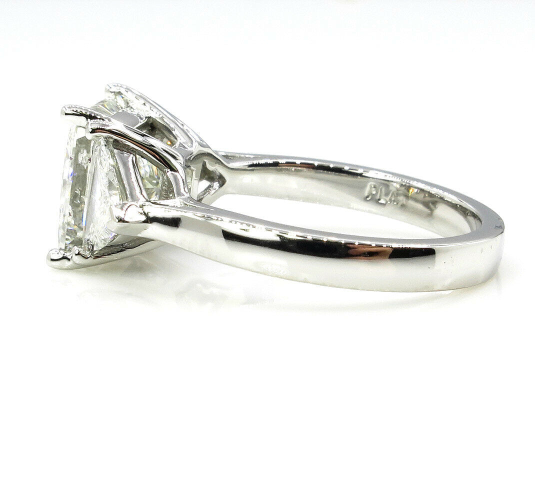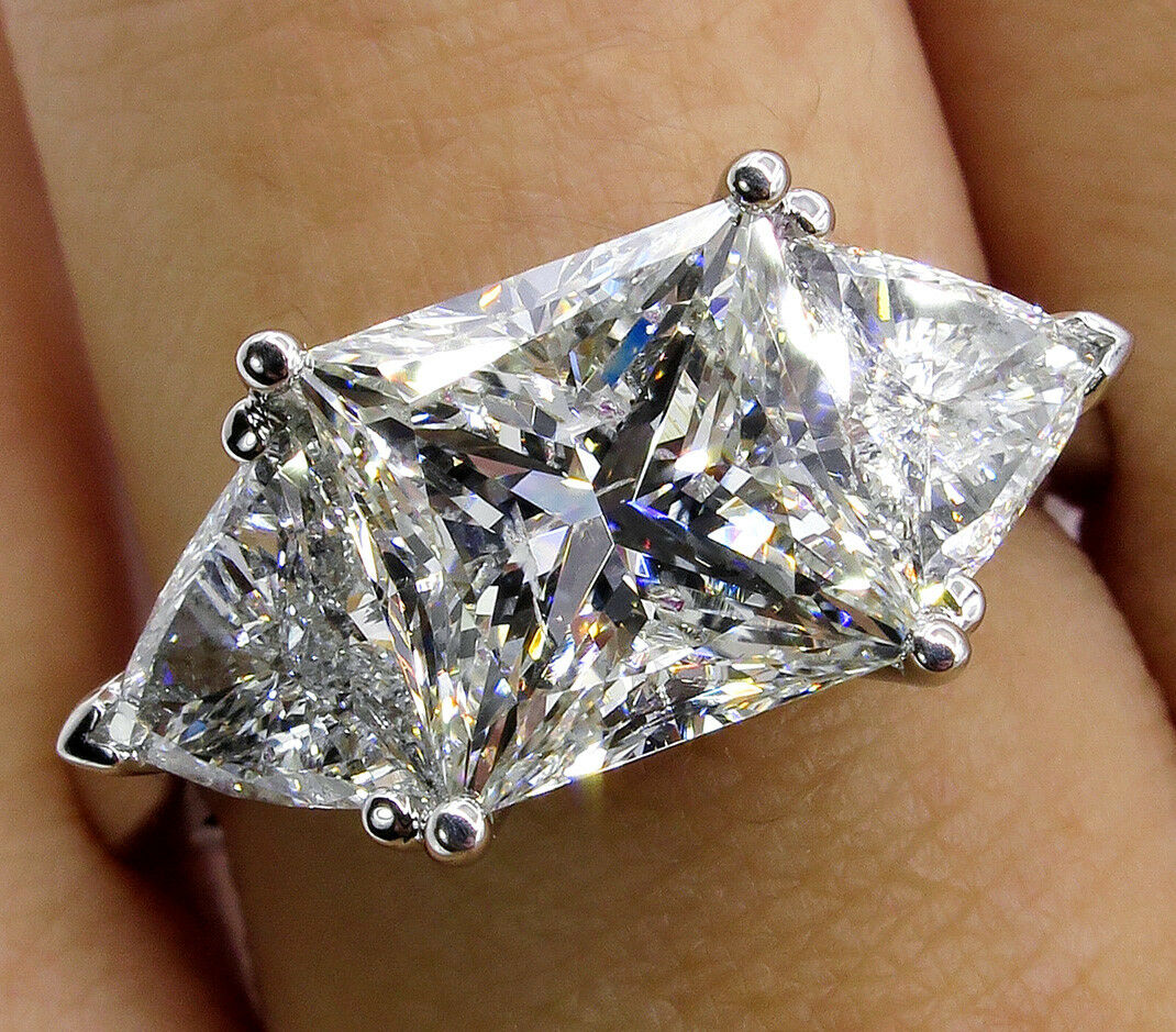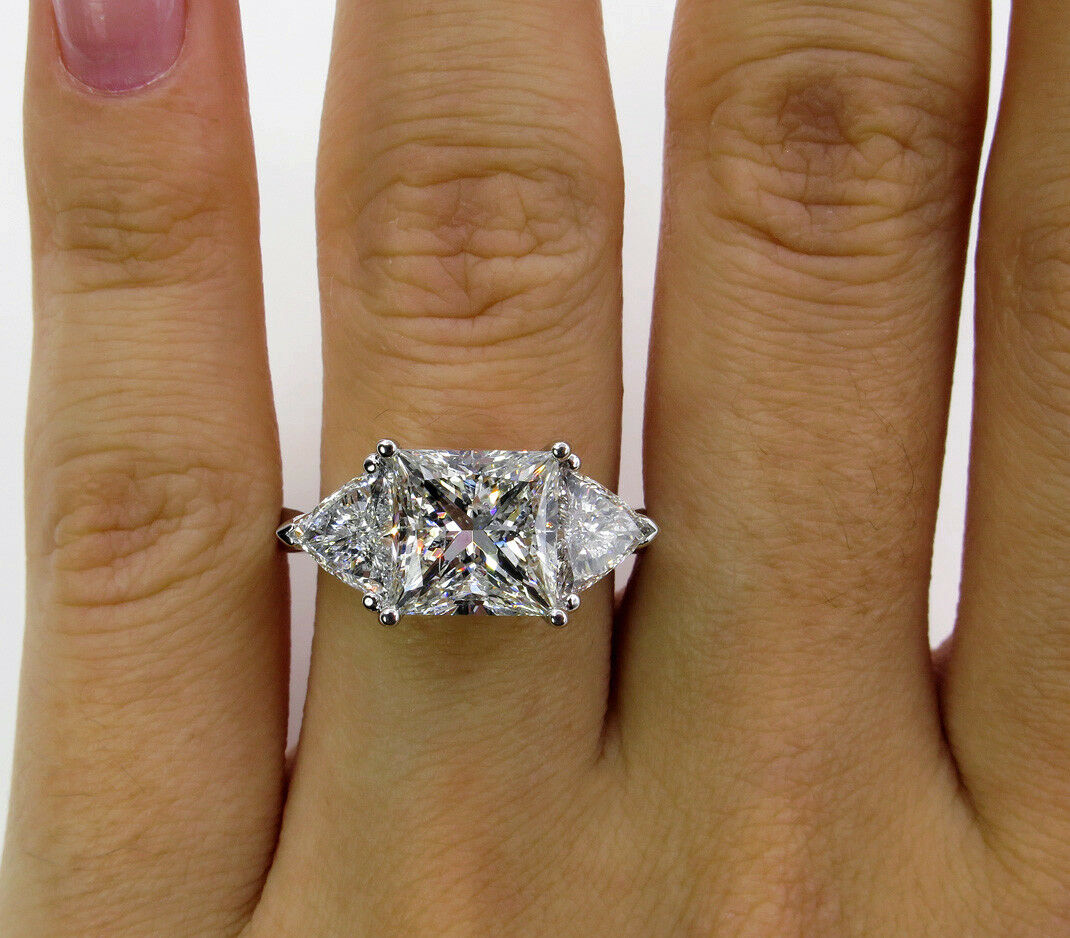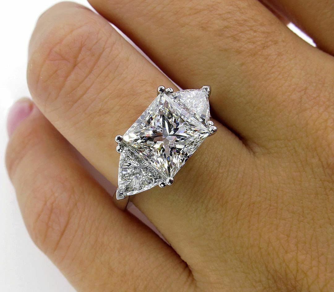 4Ct Princess Cut Trilogy Engagement Ring 14K White Gold Finish Trillion Accents