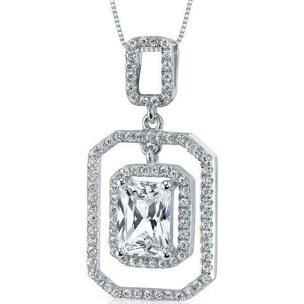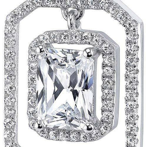 4Ct Radiant Cut Diamond Double Halo Women Pendant 14K White Gold Finish NO CHAIN