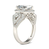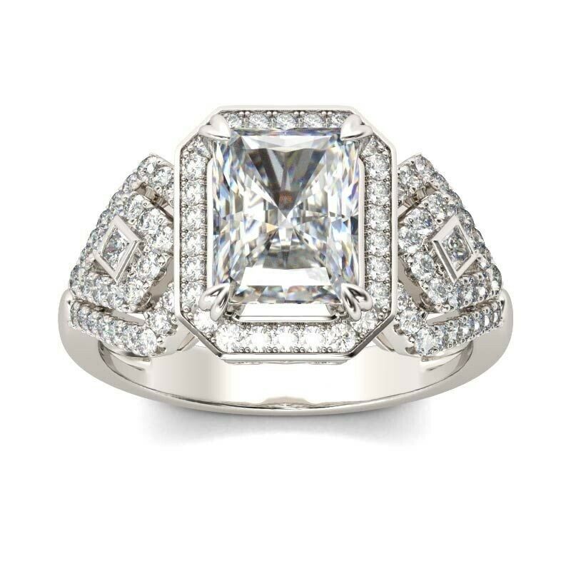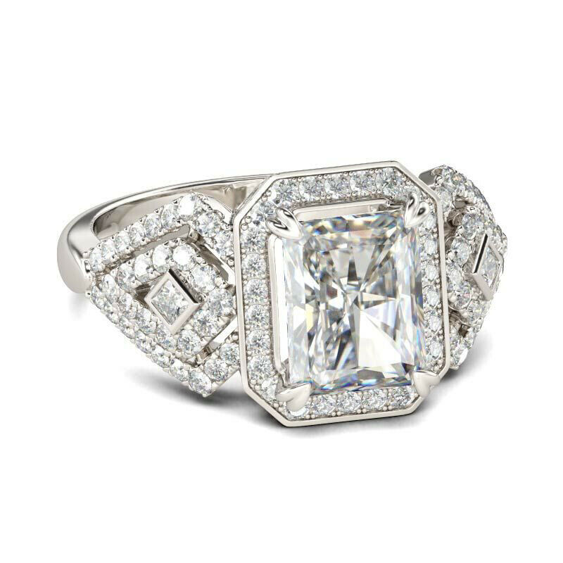 4Ct Radiant Cut Diamond Halo Accent Art Deco Engagement Ring 14K White Gold Over