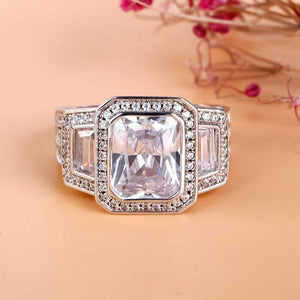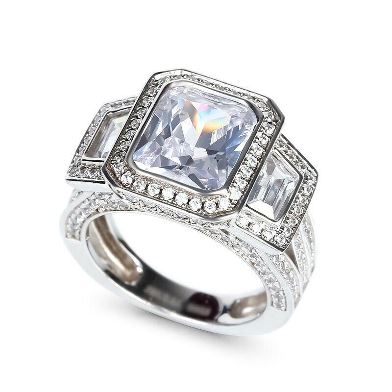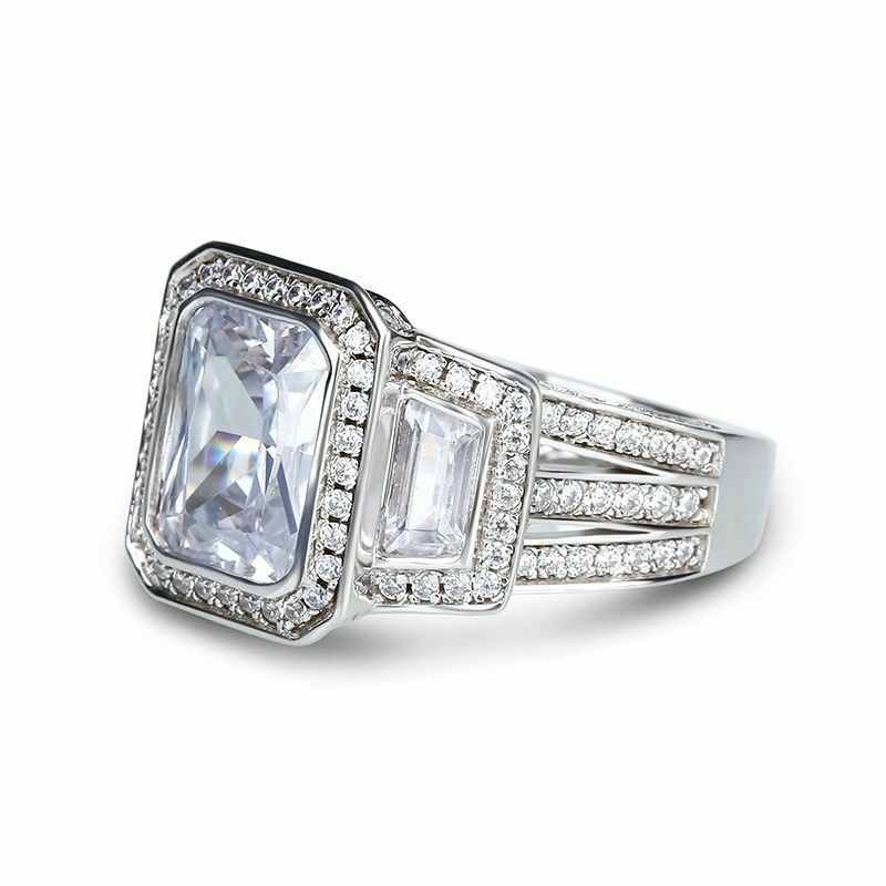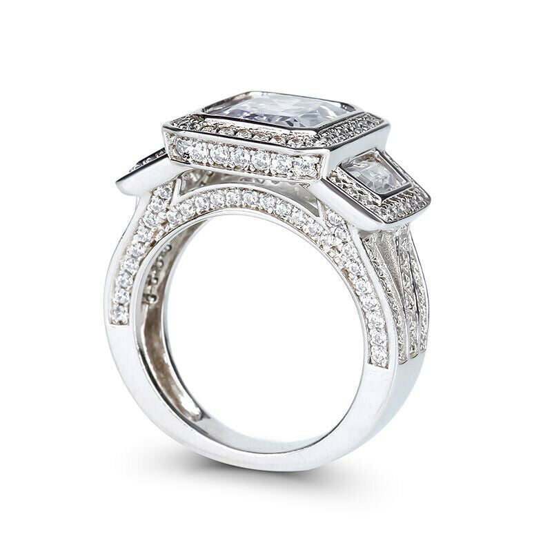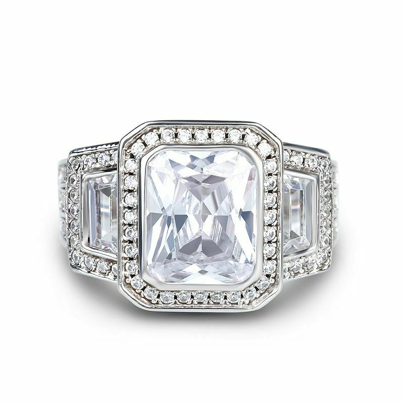 4Ct Radiant Cut Diamond Halo Iced Cocktail Engagement Ring 14K White Gold Finish