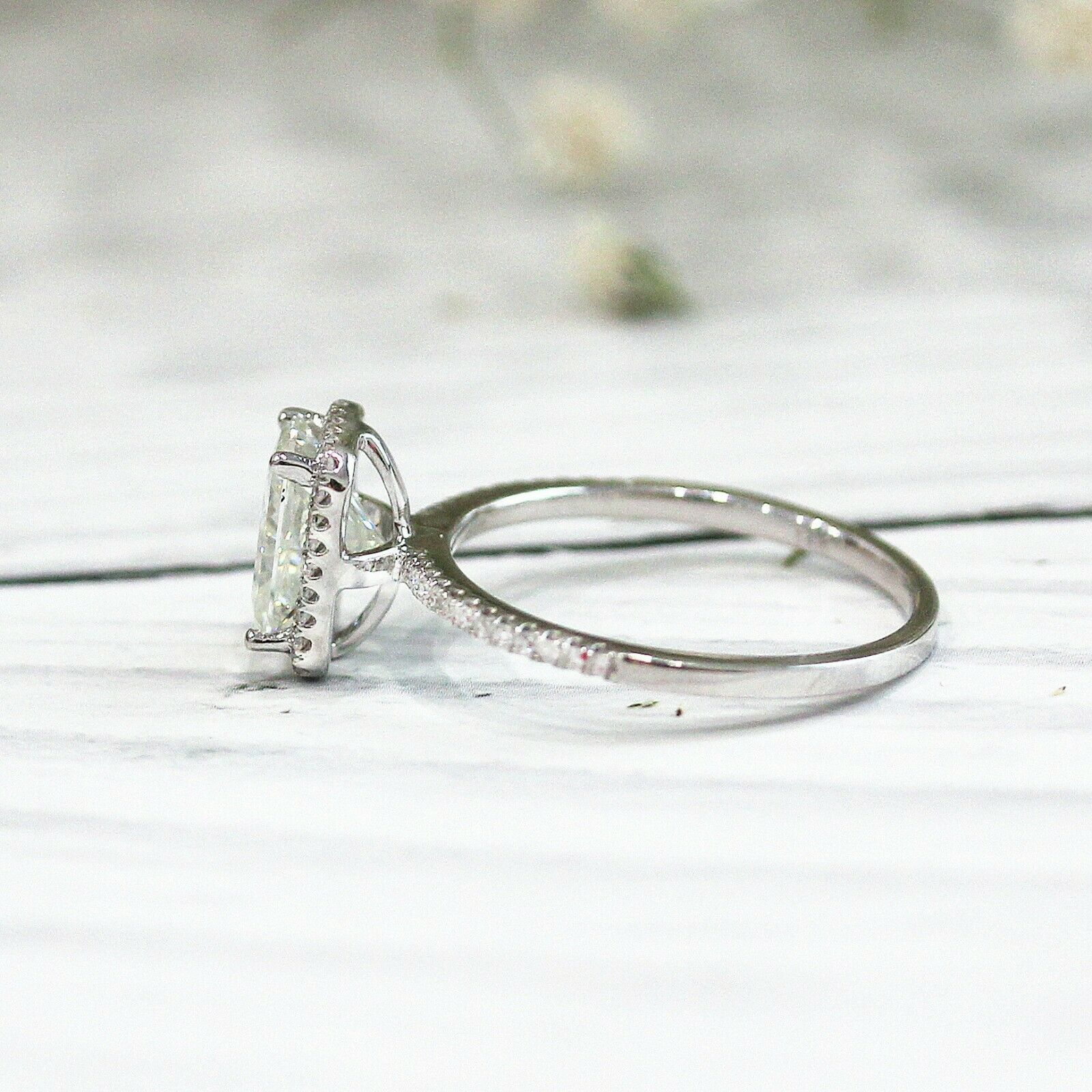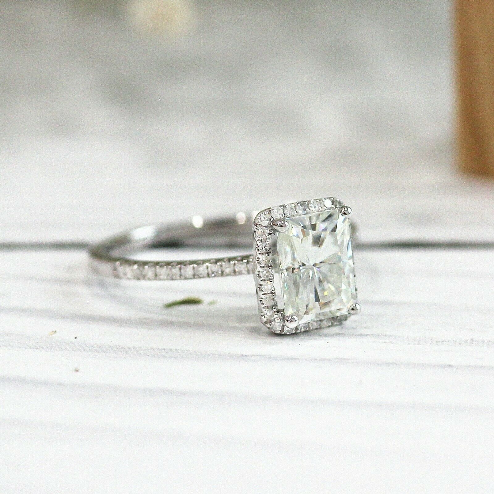 4Ct Radiant Cut DVVS1 Diamond Accents Halo Engagement Ring 14K White Gold Finish