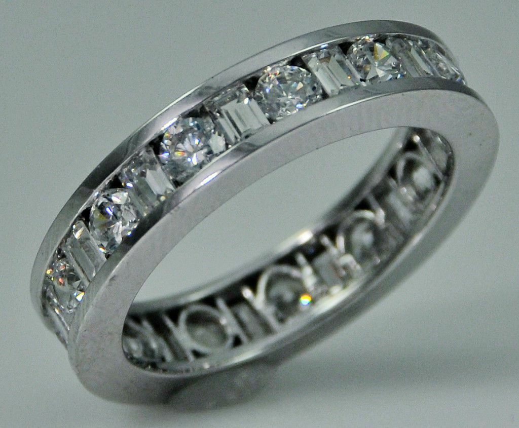 4Ct Round Baguette Cut Diamond Full Eternity Wedding Band 18K White Gold Finish