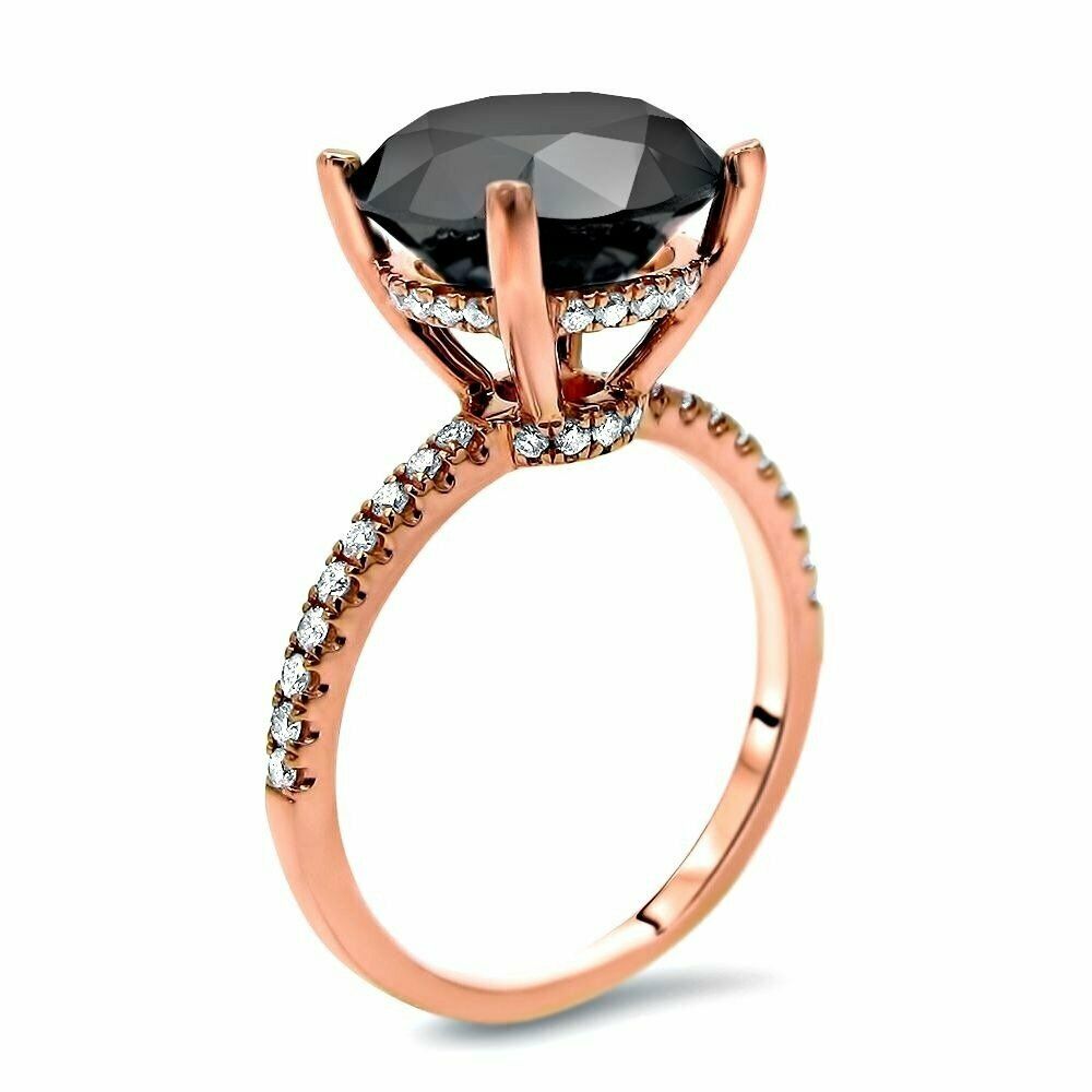 4Ct Round Black Diamond Hidden Halo Solitaire Engagement Ring 14K Rose Gold Over