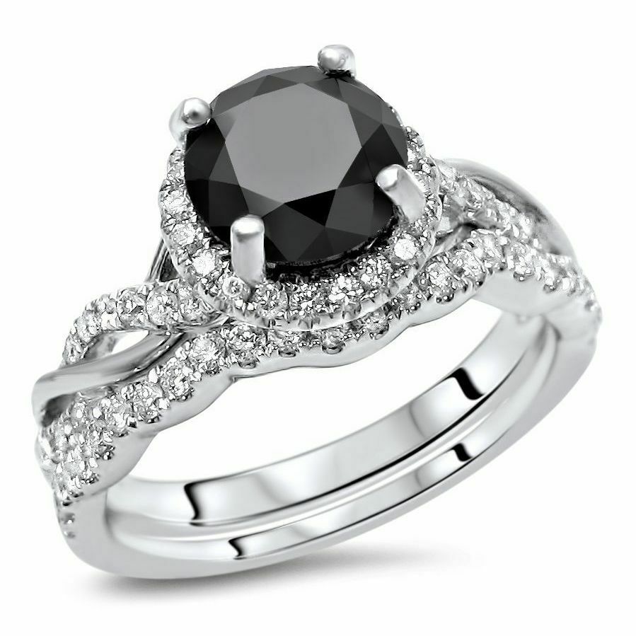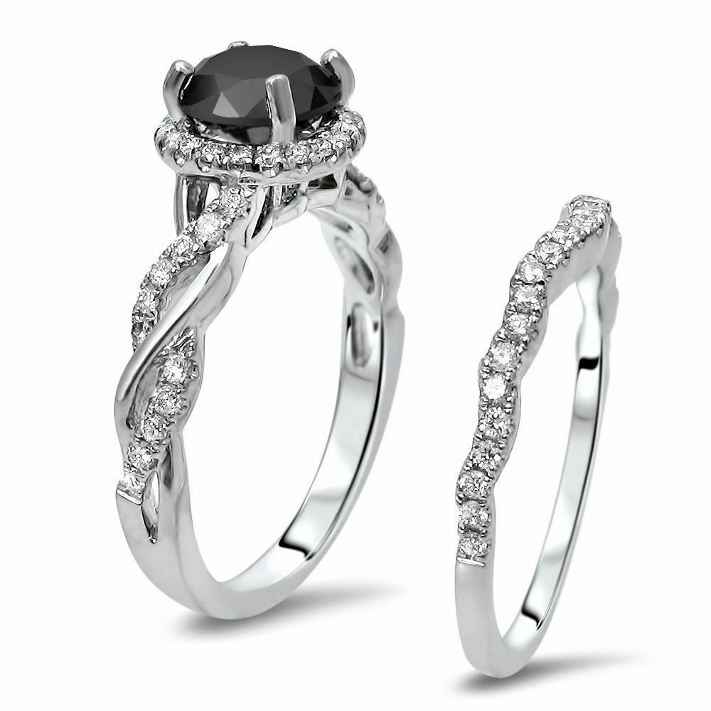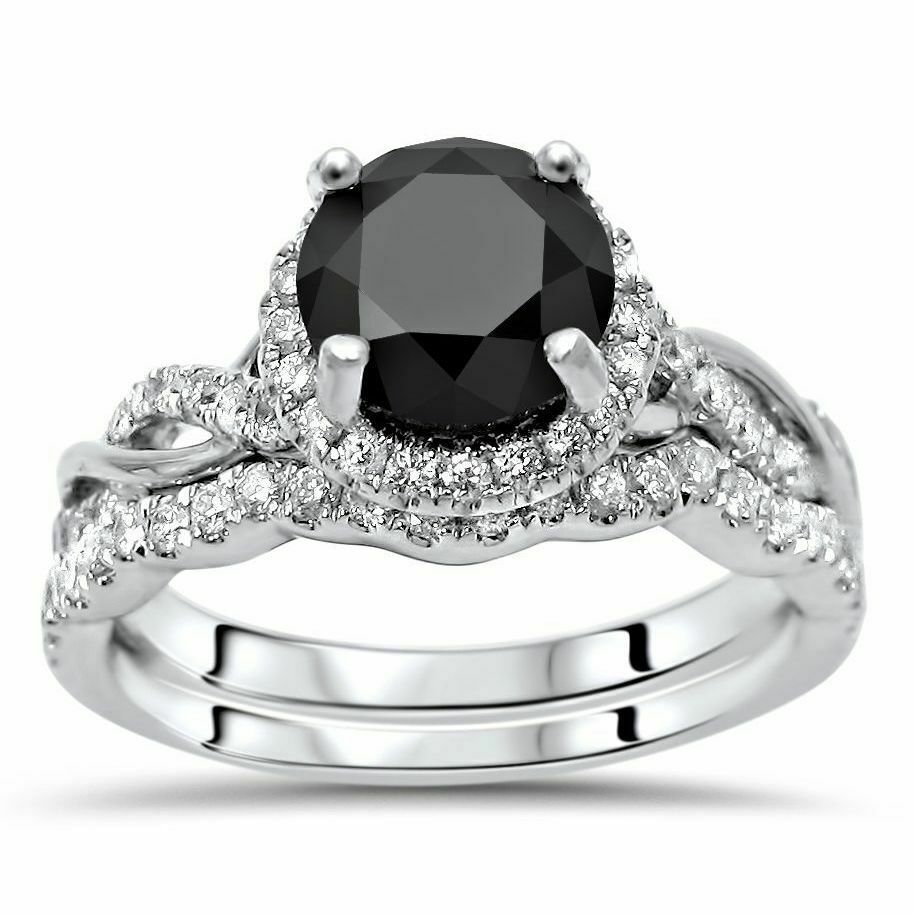4Ct Round Cut Black Diamond Bridal Set Band Engagement Ring 14K White Gold Over