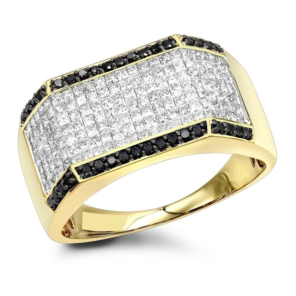 4Ct Round Cut Black Diamond Cluster Men Engagement Ring 14K Yellow Gold Finish