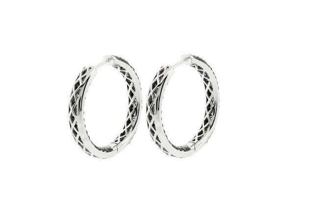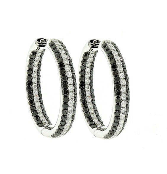 4ct Round Cut Black Diamond Inside Out Trendy Hoop Earring 14k White Gold Finish