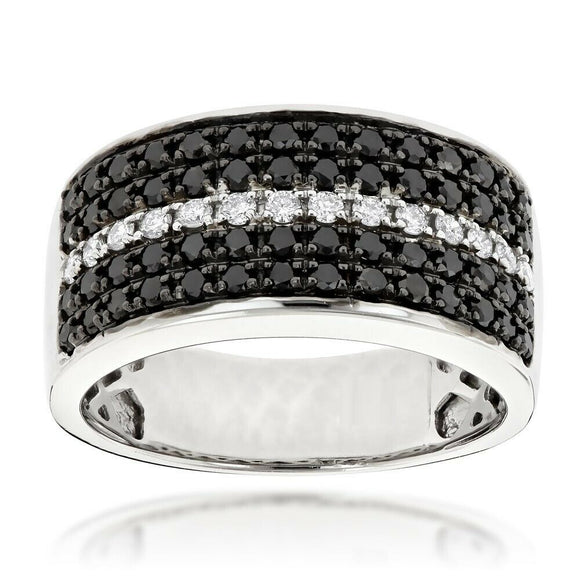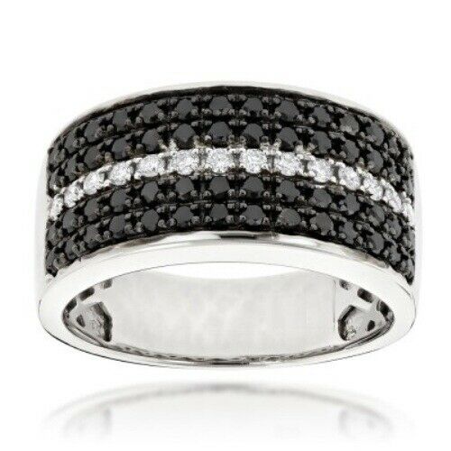 4Ct Round Cut Black White Diamond Five Row Men Wedding Band 14K White Gold Over