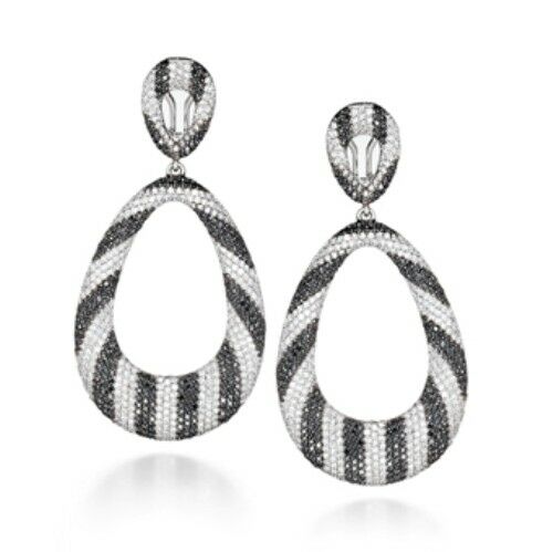 4Ct Round Cut Black White Diamond Oval Shaped Drop Earrings 14K White Gold Over