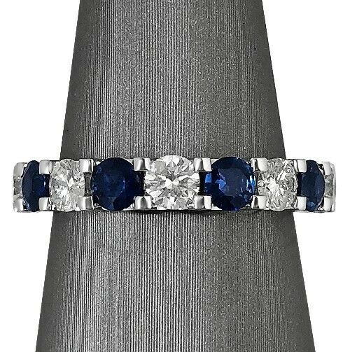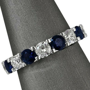 4Ct Round Cut Blue Sapphire Diamond Eternity Wedding Band 18K White Gold Finish