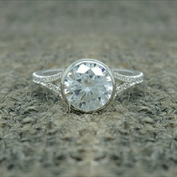 4Ct Round Cut Diamond Bezel Set Solitaire Engagement Ring 14K White Gold Finish