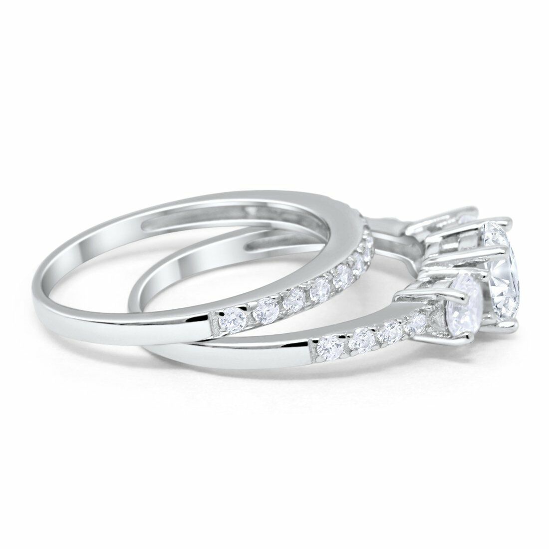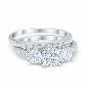 4Ct Round Cut Diamond Bridal Set Trilogy Ring Band Women 14K White Gold Finish