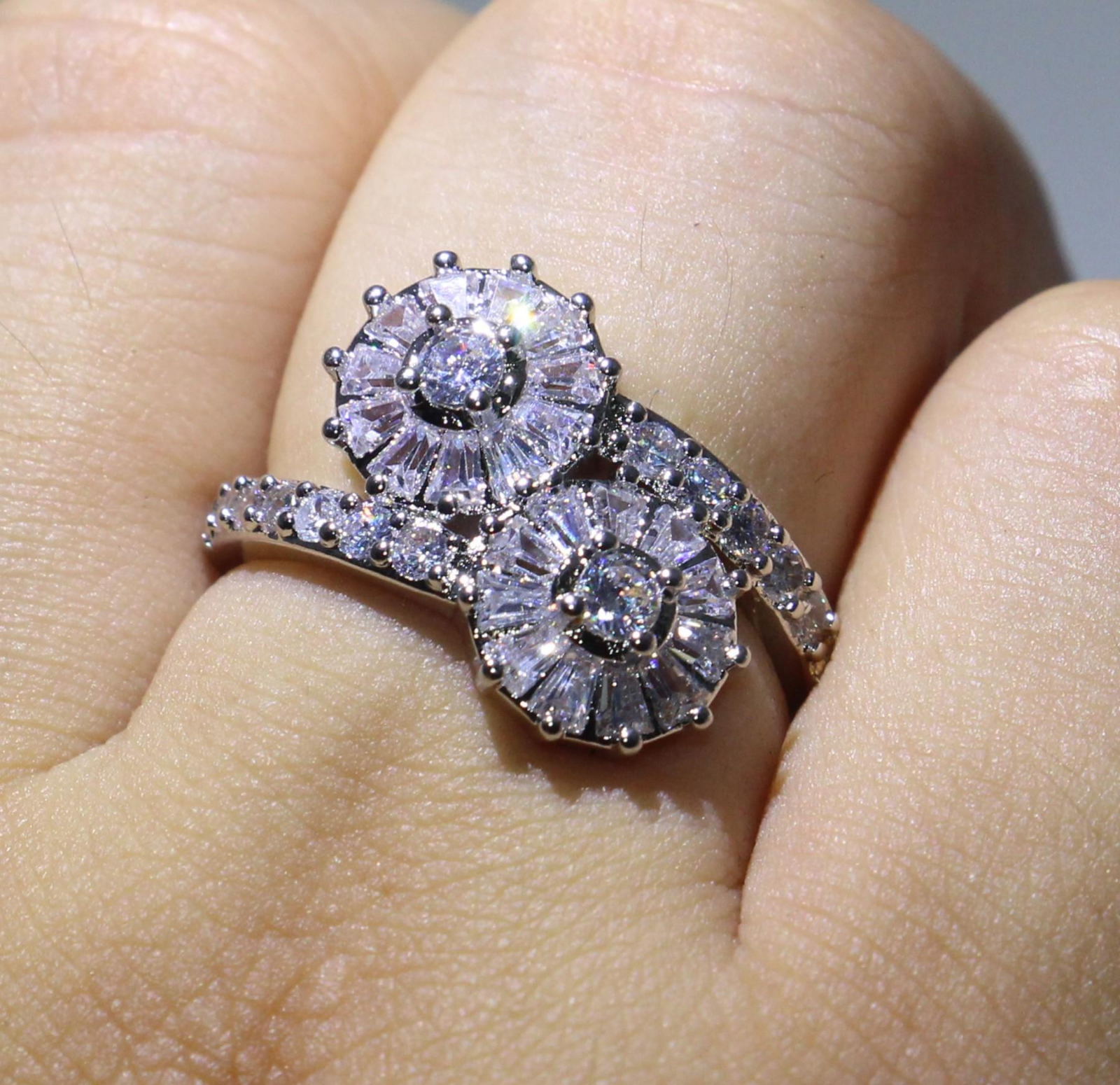 4ct Round Cut Diamond Engagement Ring 14k White Gold Finish Floral Bypass Design