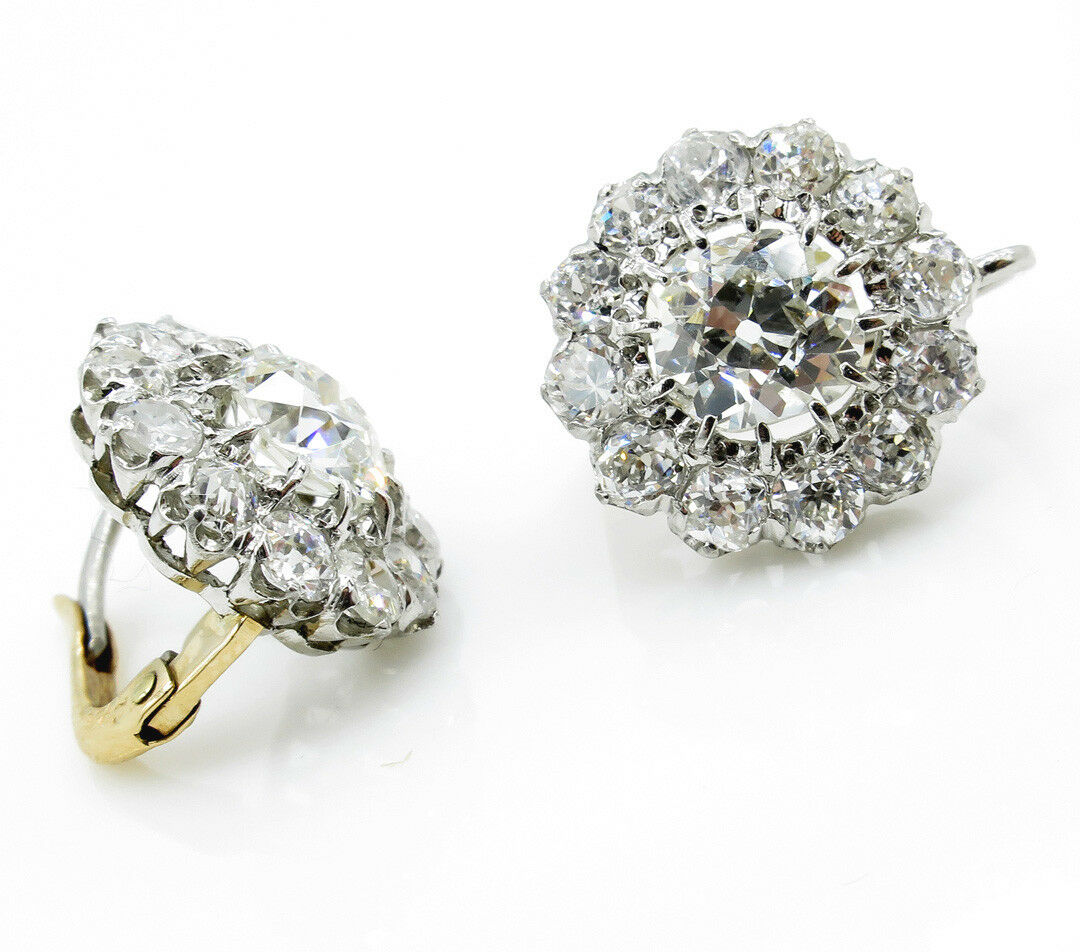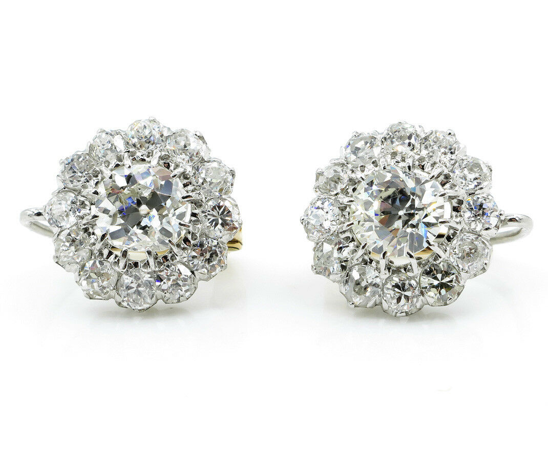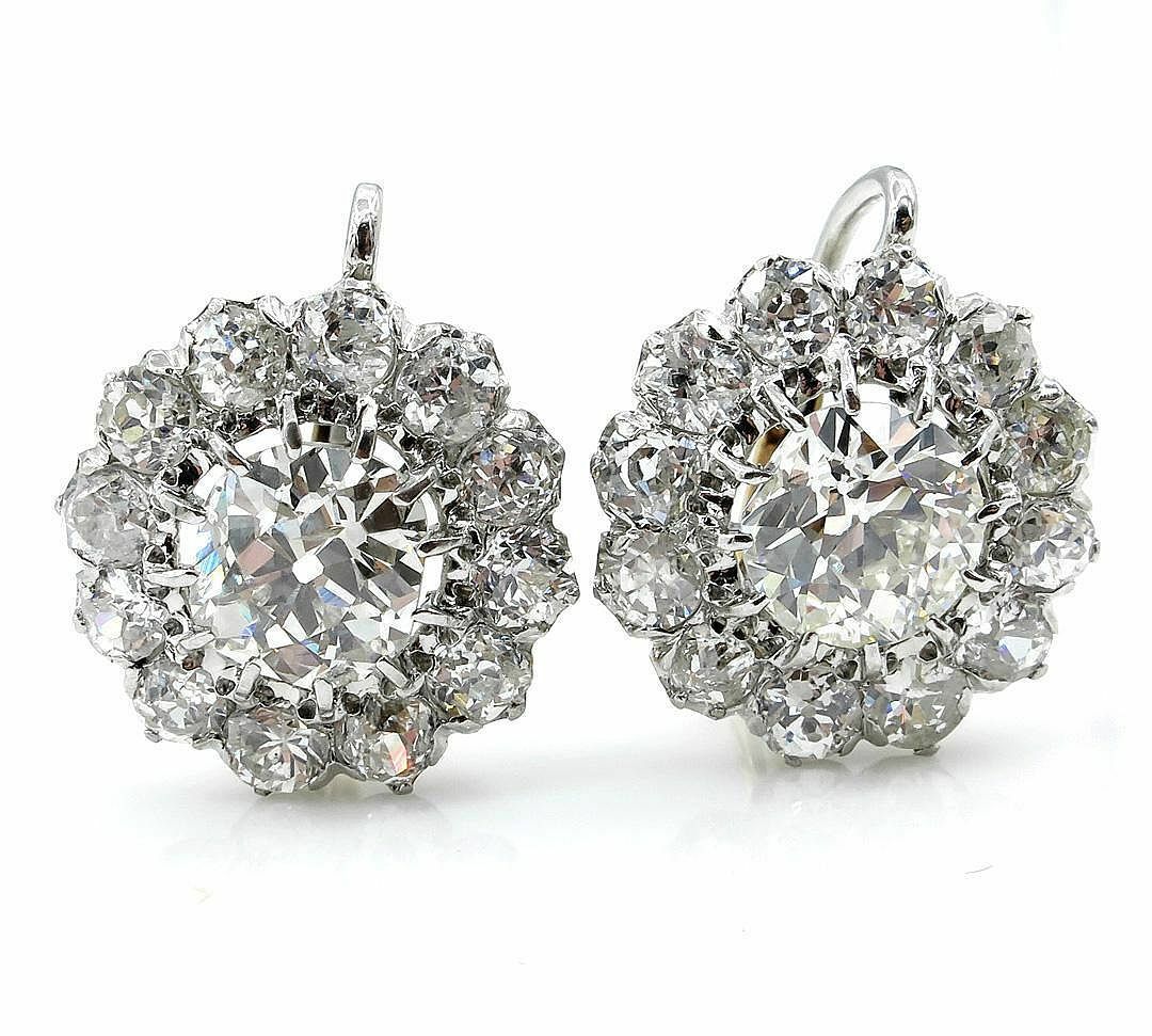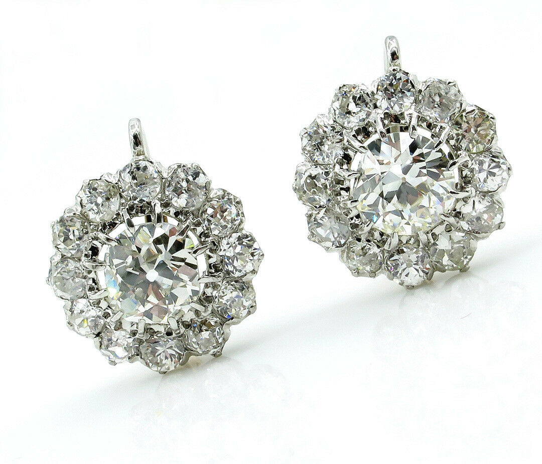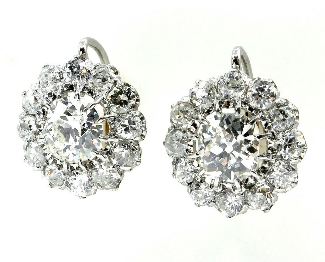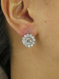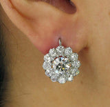 4Ct Round Cut Diamond Floral Halo Drop Earrings For Women 14K White Gold Finish