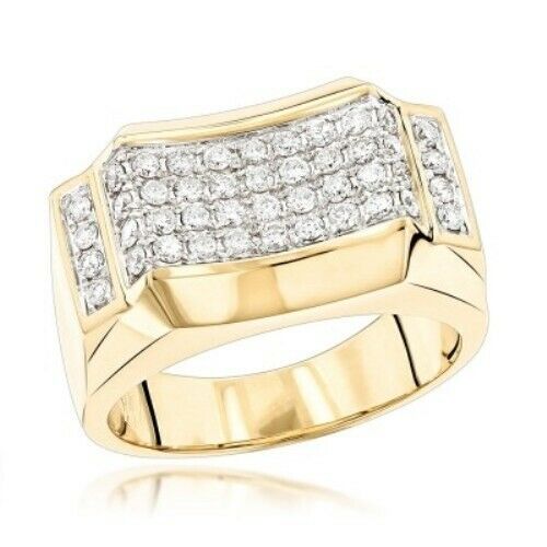 4Ct Round Cut Diamond Four Row Iced Men Engagement Ring 14K Yellow Gold Finish