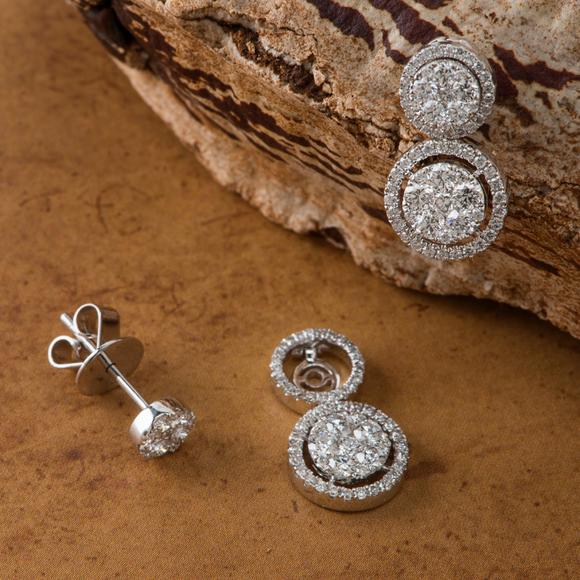 4ct Round Cut Diamond Halo Dual Use Women Stud Earrings 14k White Gold Finish