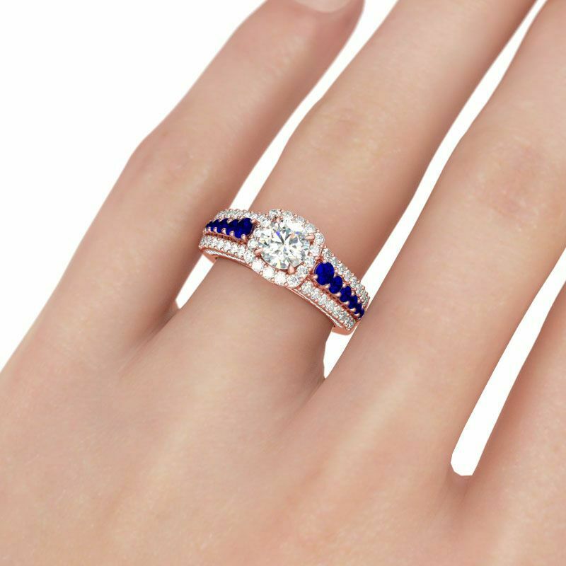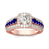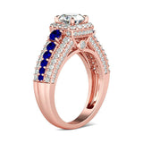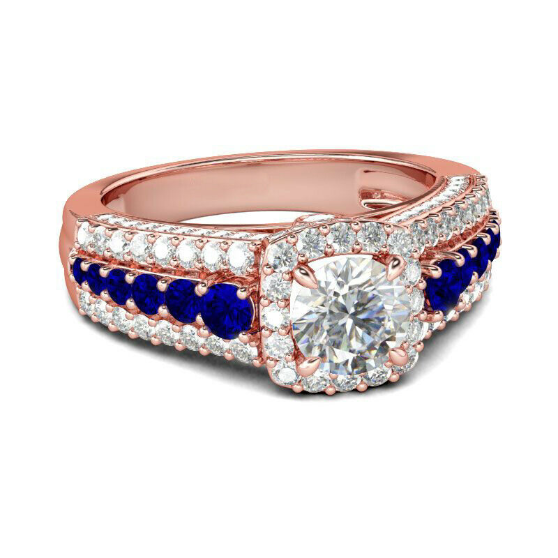 4Ct Round Cut Diamond Halo Sapphire Accent Engagement Ring 14K Rose Gold Finish