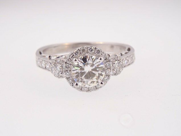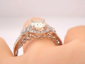 4Ct Round Cut Diamond Halo Vintage Filigree Engagement Ring 14K White Gold Over