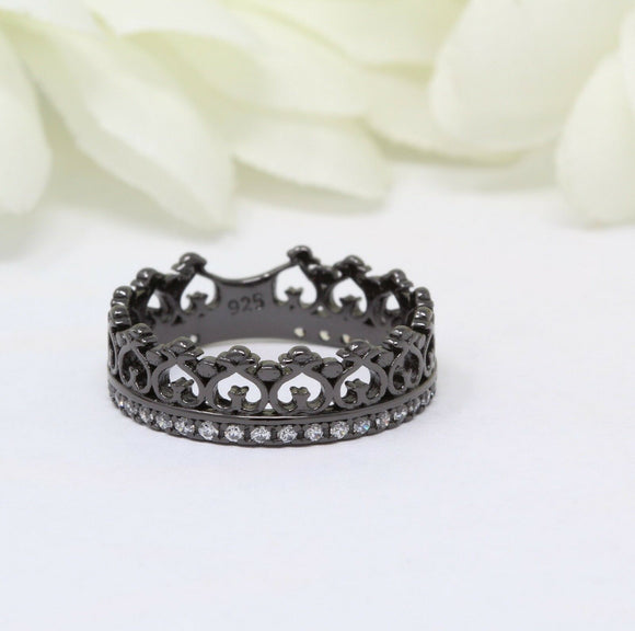 4Ct Round Cut Diamond Princess Crown Engagement Ring Band 14K Black Gold Finish