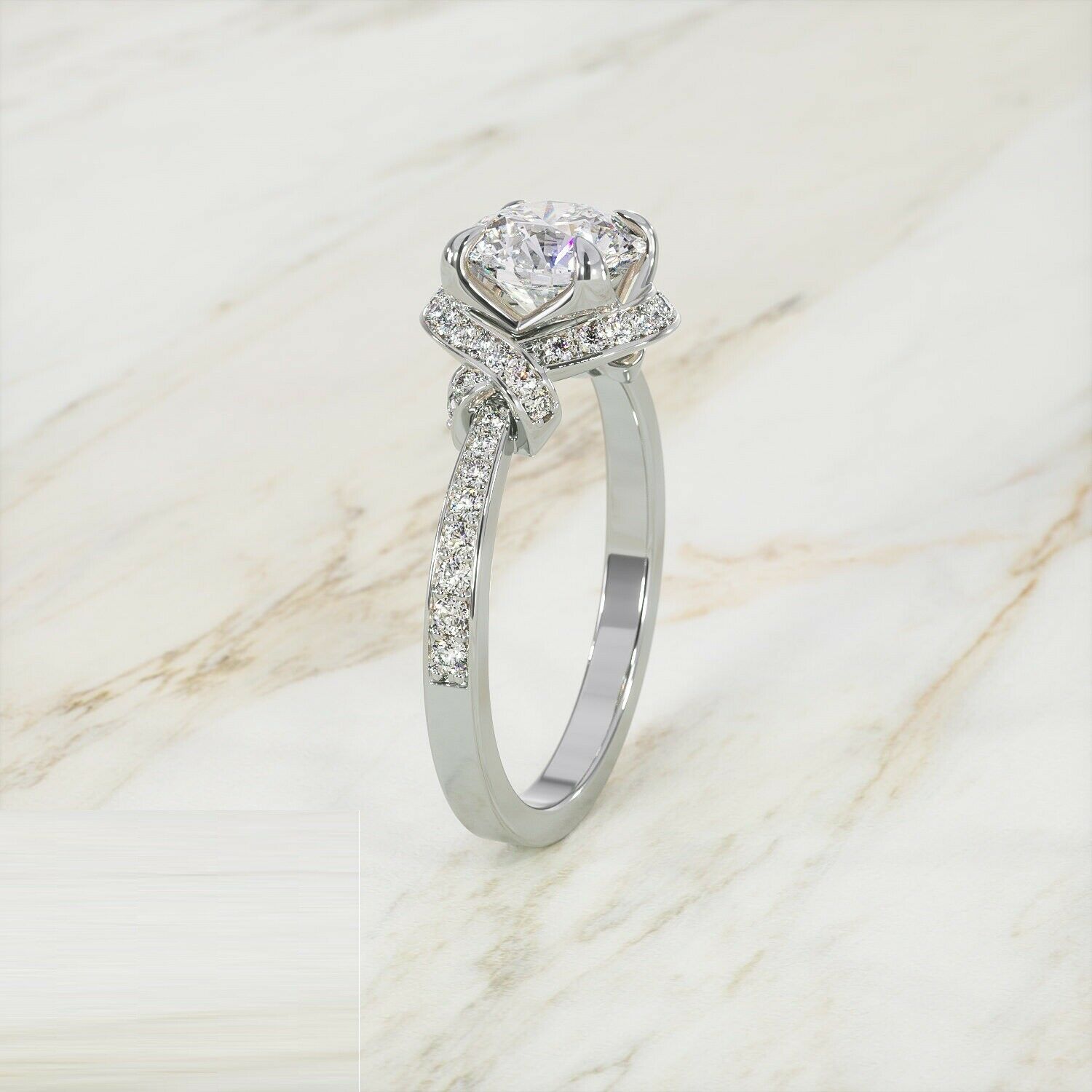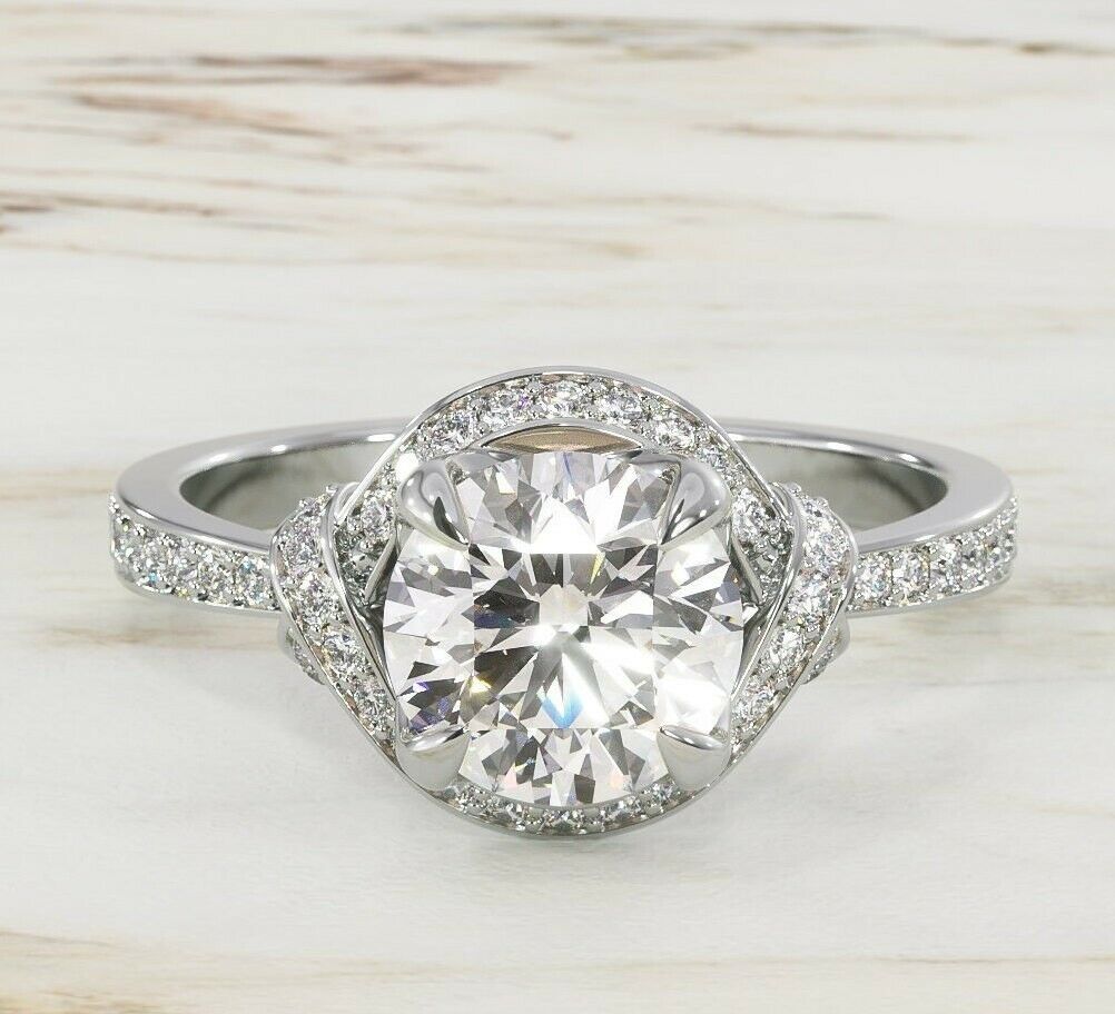 4Ct Round Cut Diamond Stylish Knot Accent Engagement Ring 14K White Gold Finish