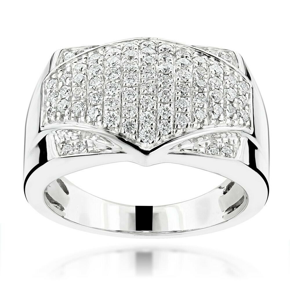 4Ct Round Cut Diamond Stylish Unique Men Engagement Ring 14K White Gold Finish