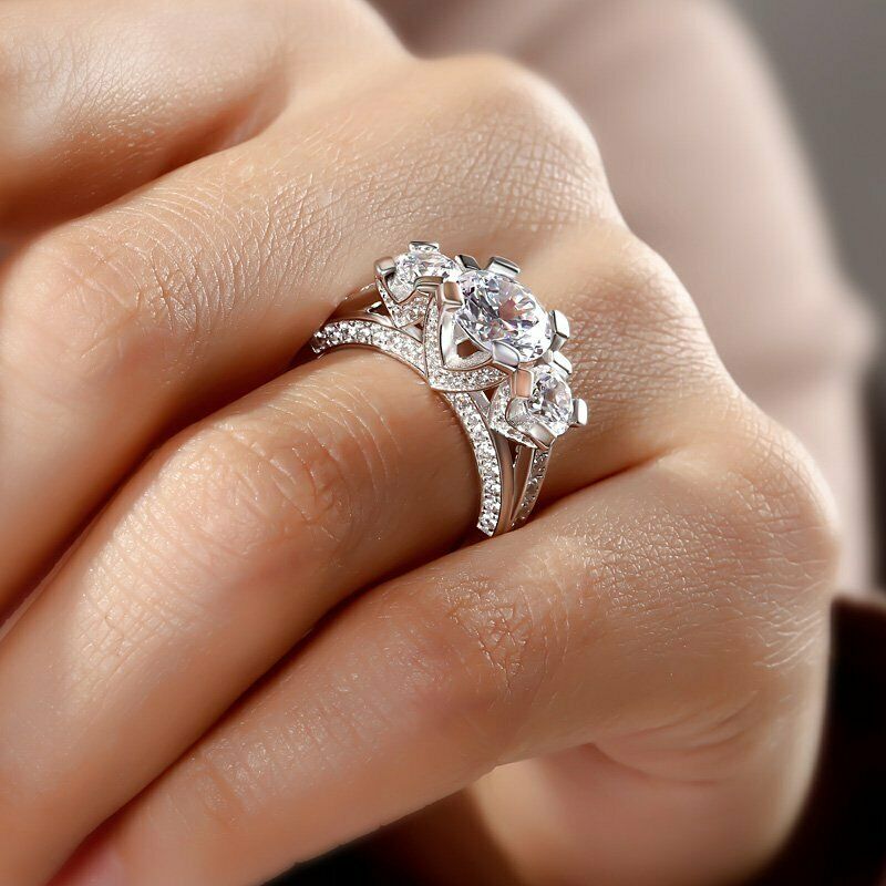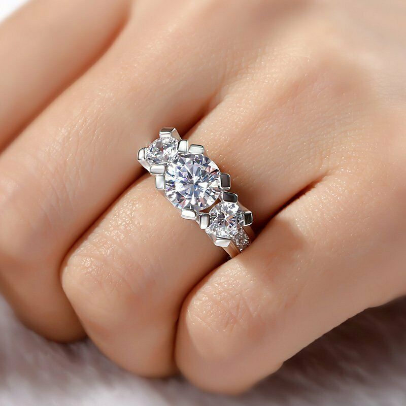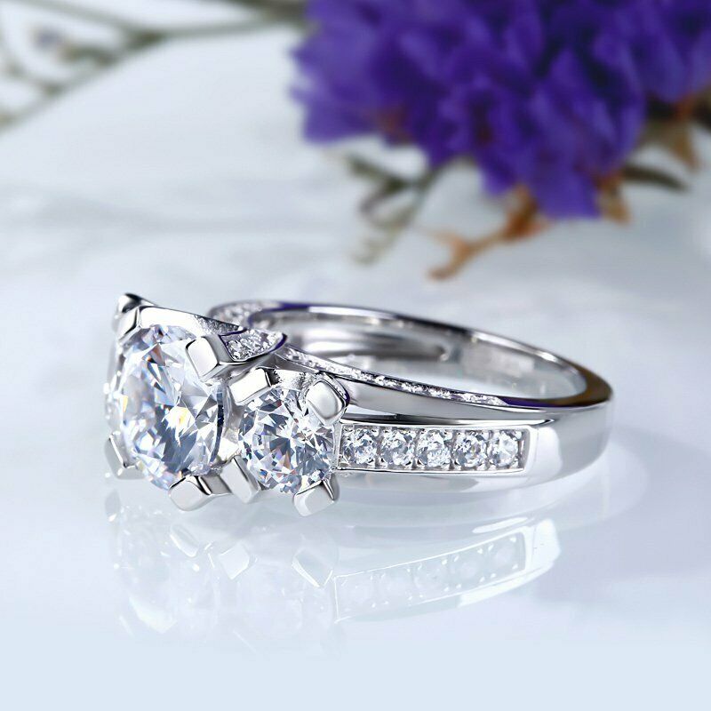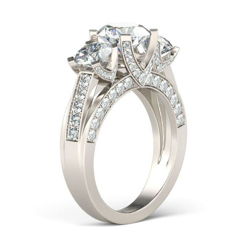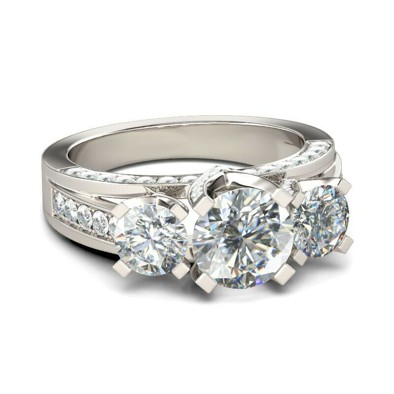 4Ct Round Cut Diamond Three Stone Vintage Engagement Ring 14K White Gold Finish