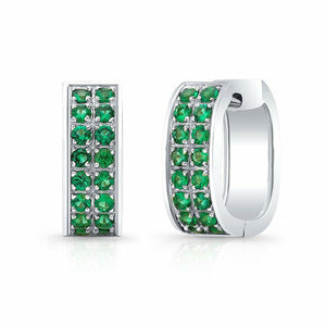 4Ct Round Cut Green Emerald Two Row Huggies Earrings Women 14K White Gold Finish