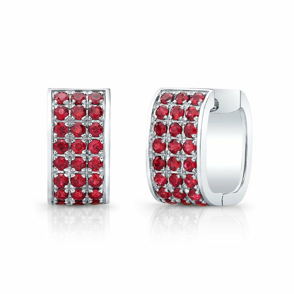 4Ct Round Cut Pink Ruby Triple Row Huggies Earrings Women 14K White Gold Finish