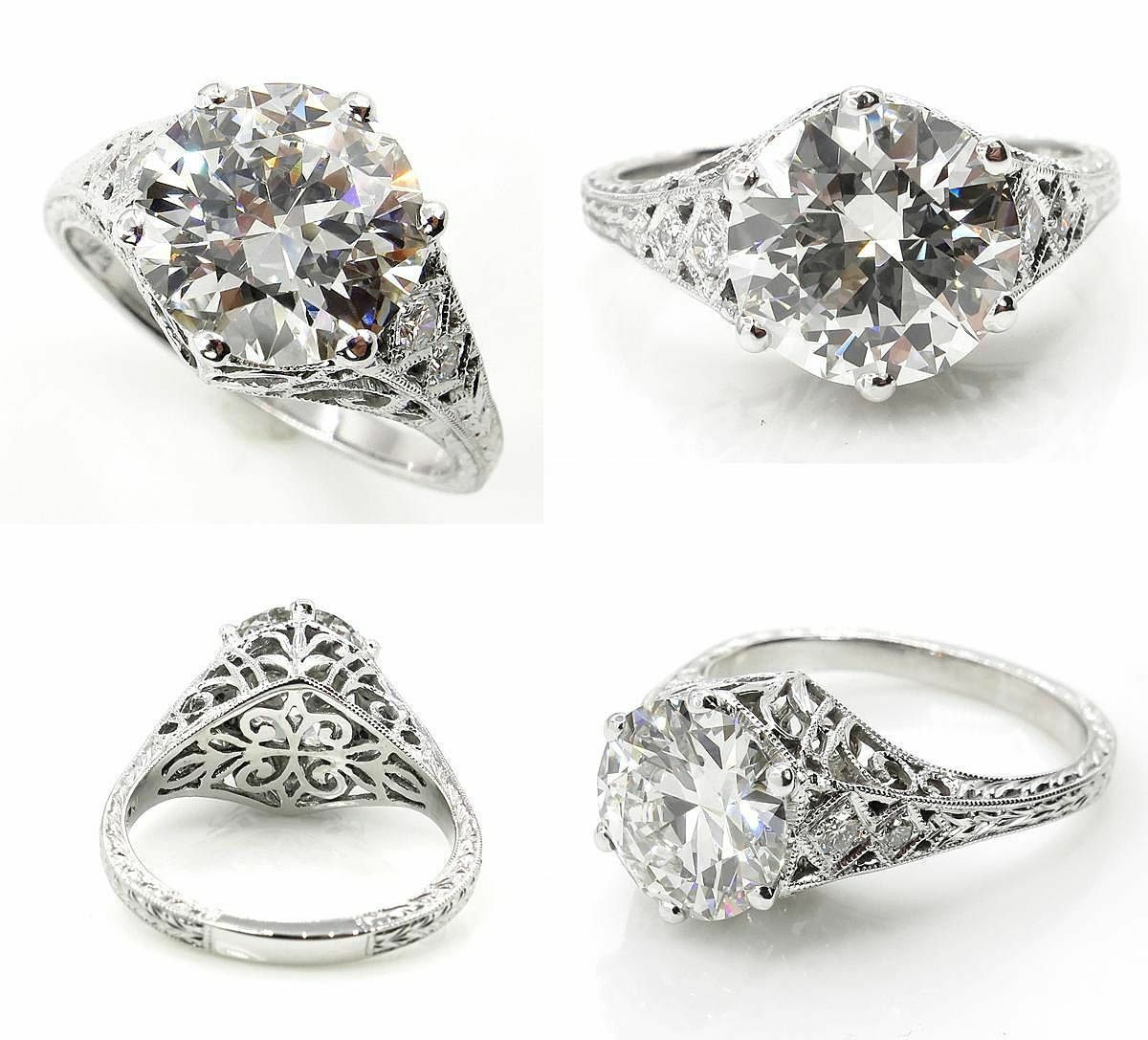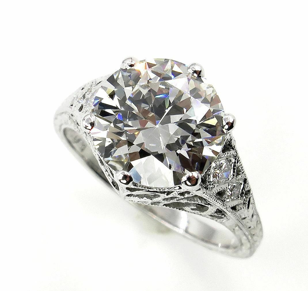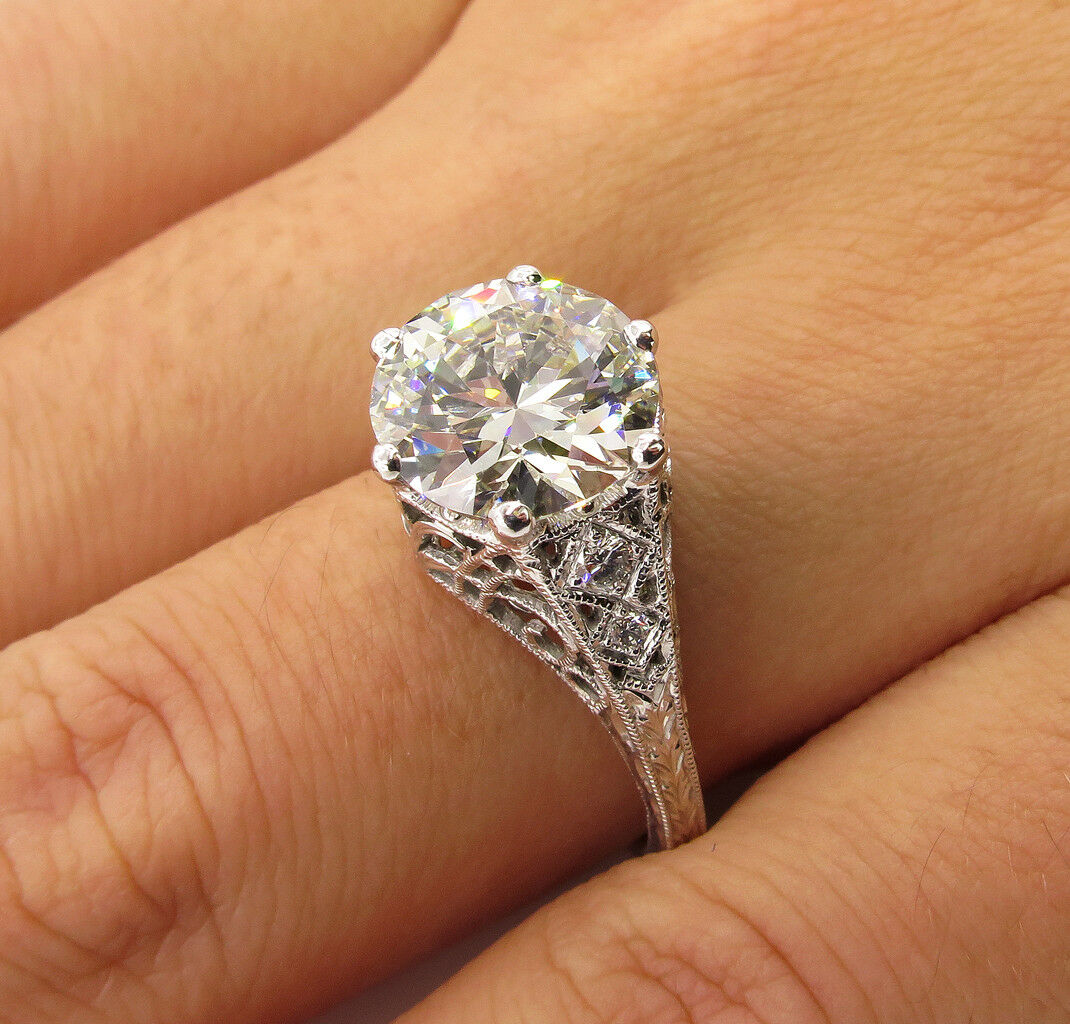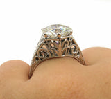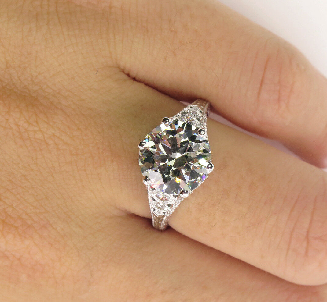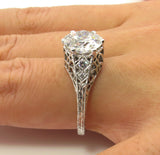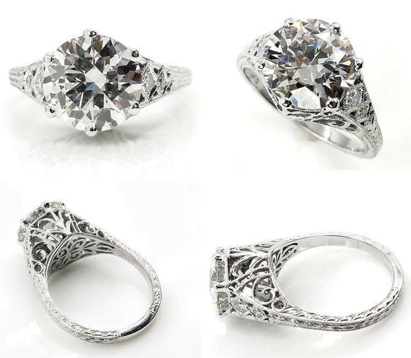 4Ct Round Diamond Filigree Vintage Queens Engagement Ring 18K White Gold Finish
