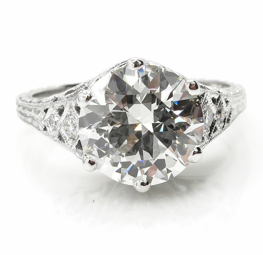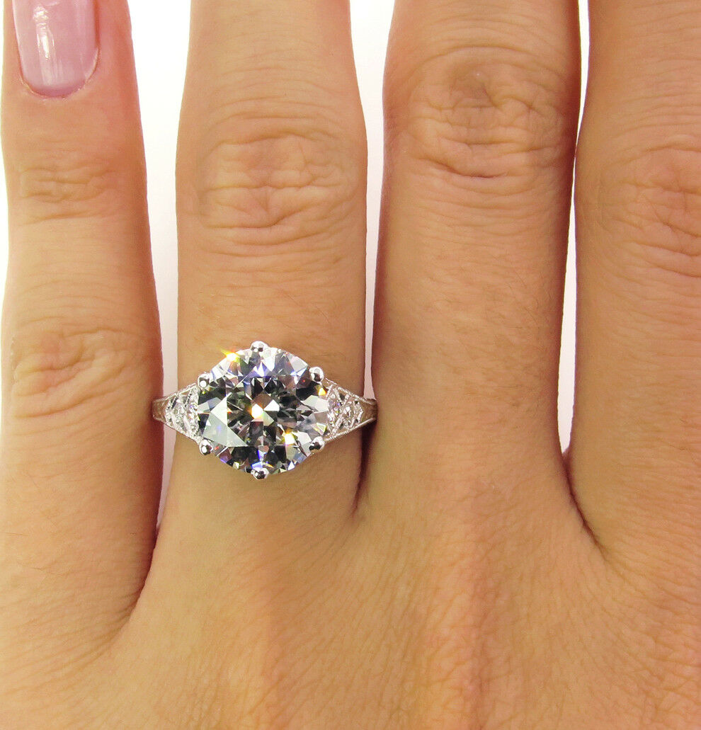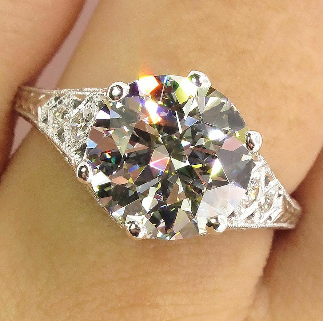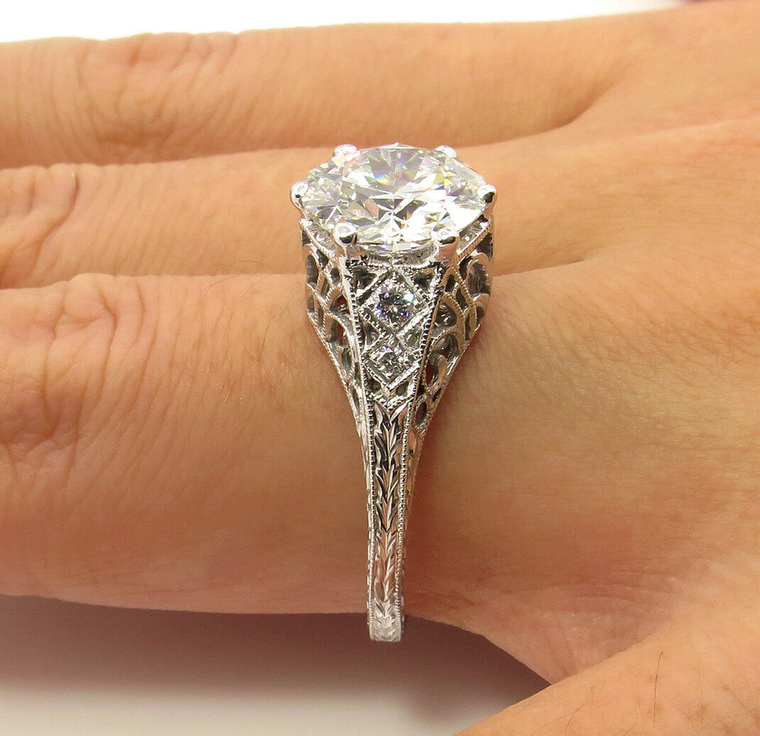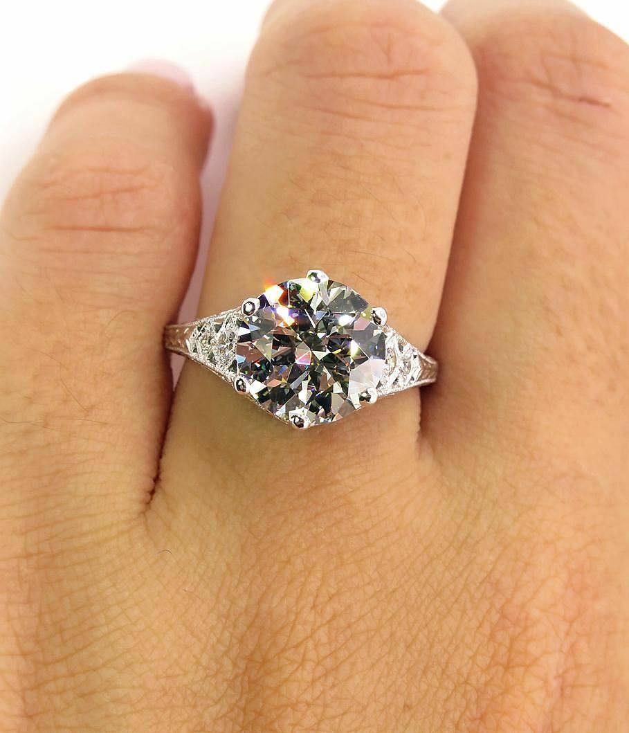 4Ct Round Diamond Filigree Vintage Queens Engagement Ring 18K White Gold Finish