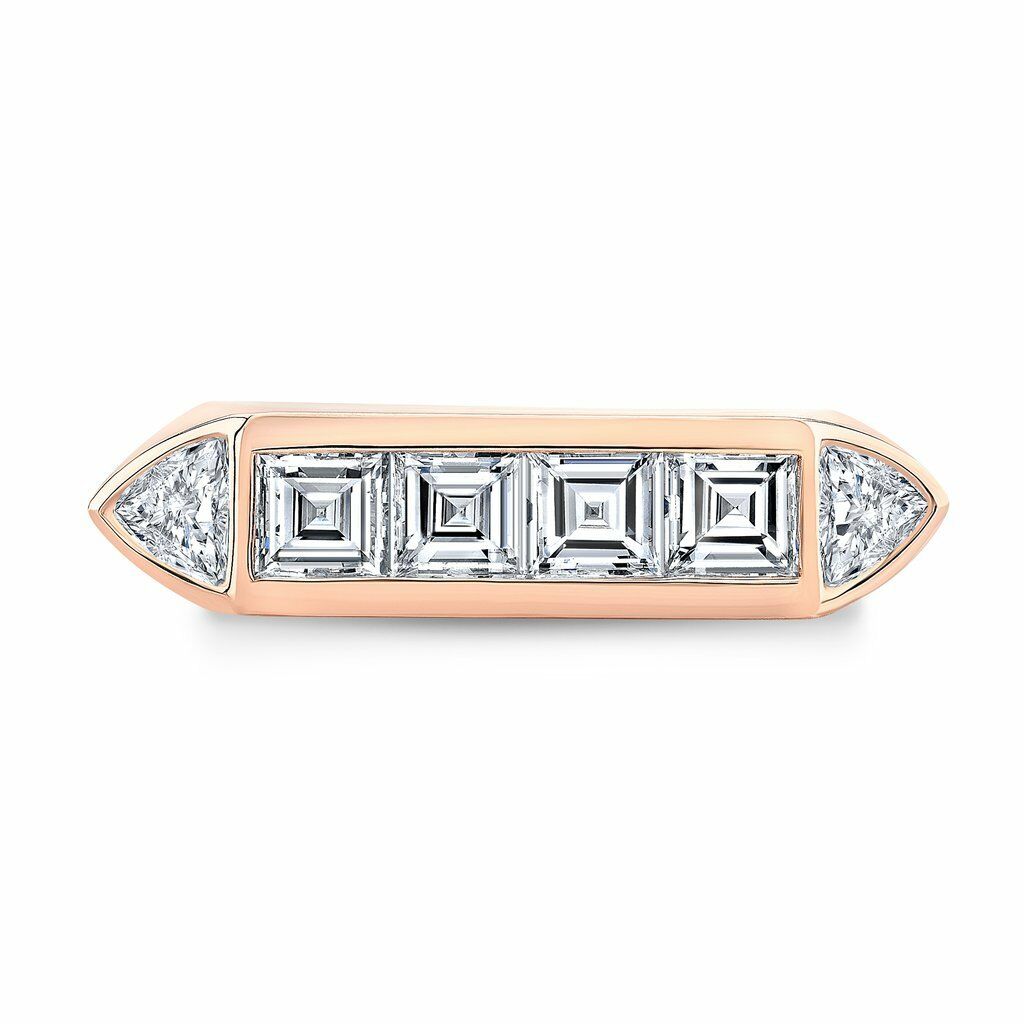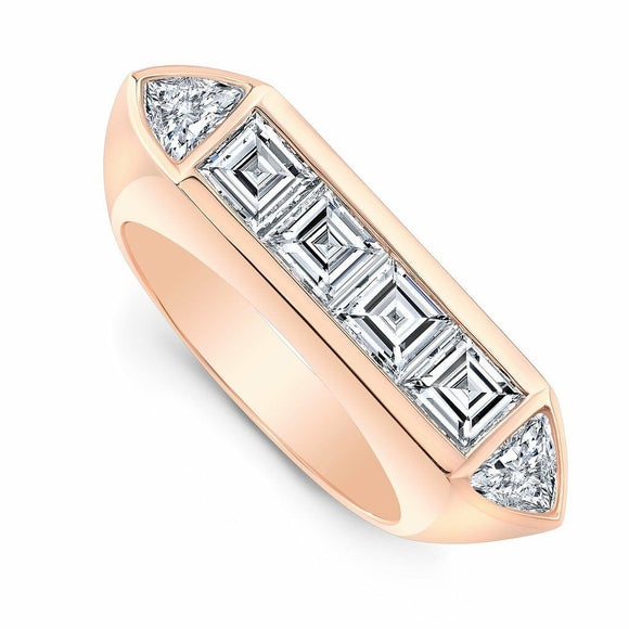 5Ct Asscher Trillion Cut Diamond Art Deco Engagement Ring 14K Rose Gold Finish