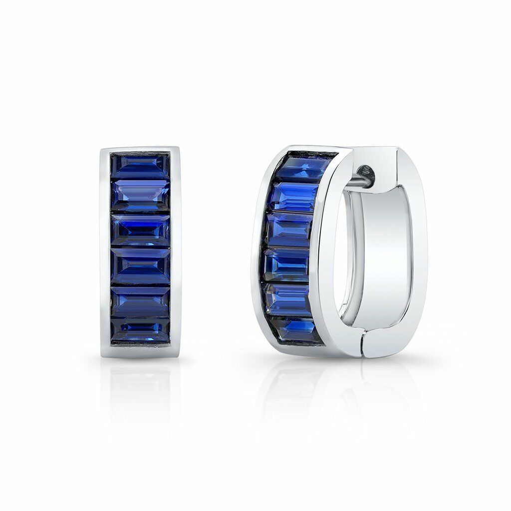 5Ct Baguette Cut Blue Sapphire Royal Women Huggie Earrings 14K White Gold Finish