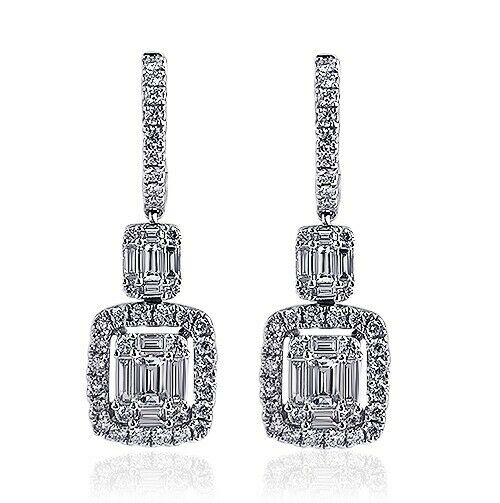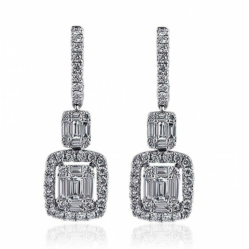 5Ct Baguette Cut Diamond Elegant Party Dangle Drop Earring 14K White Gold Finish