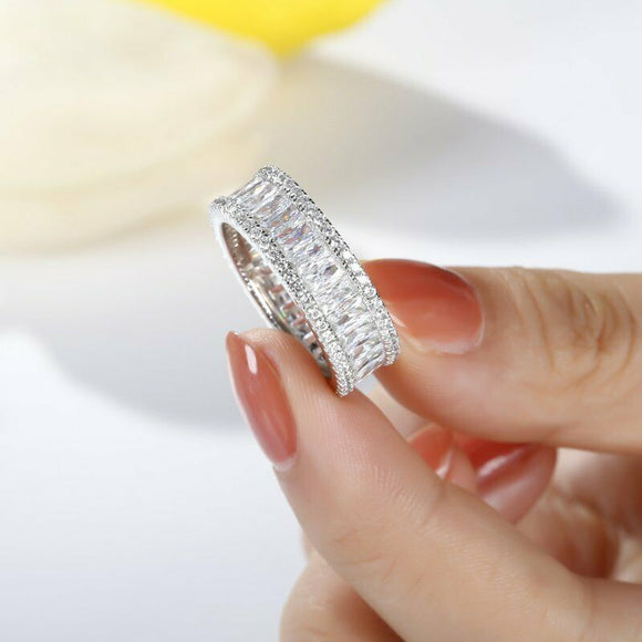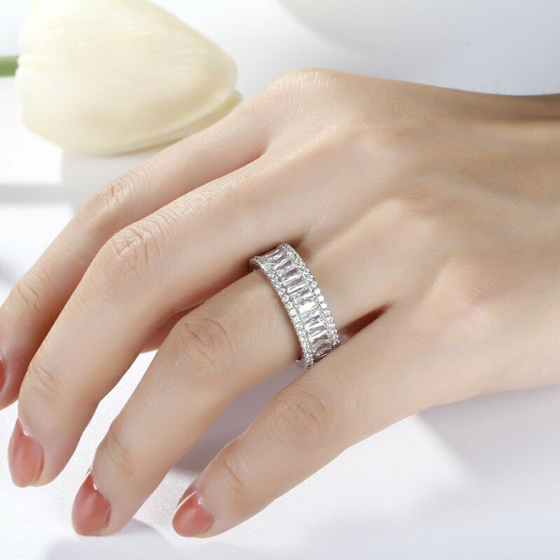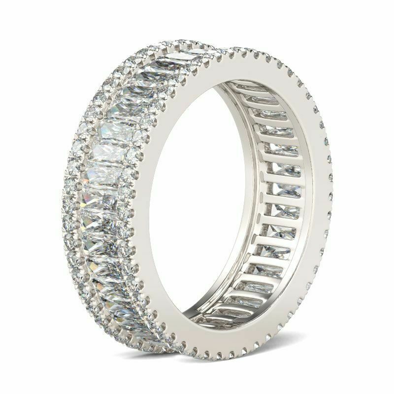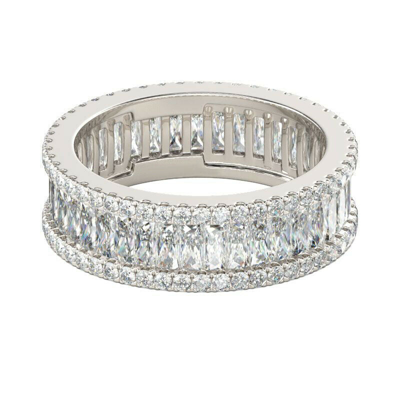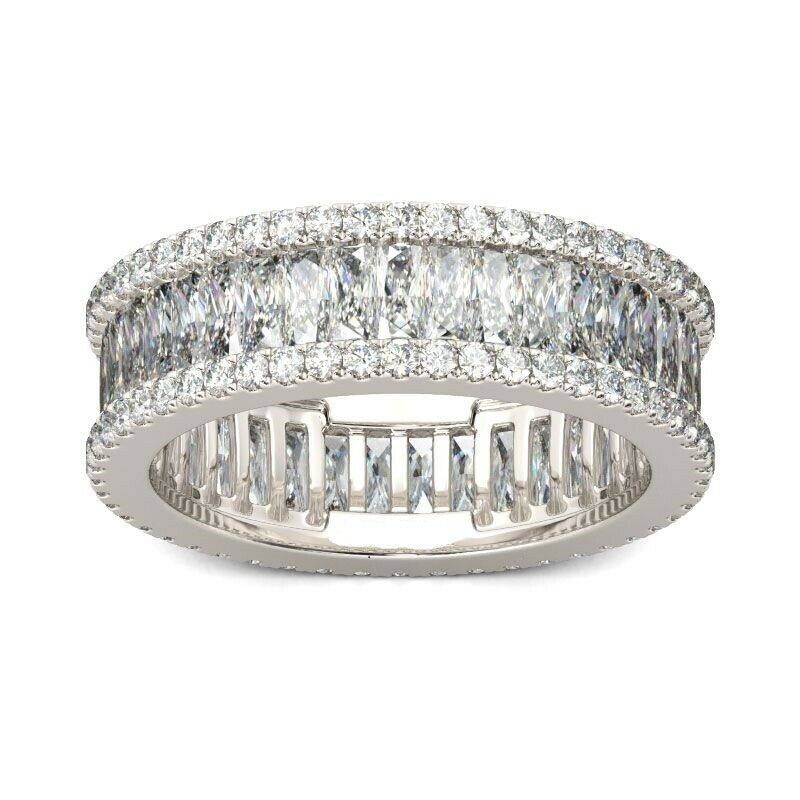 5Ct Baguette Cut Diamond Round Accents Eternity Wedding Band 14K White Gold Over