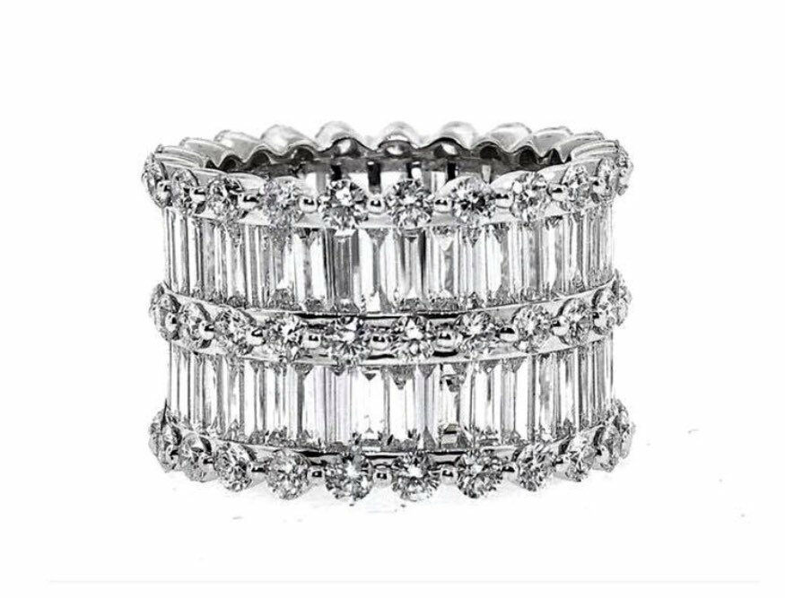 5ct Baguette Cut Eternity Wide Cocktail Wedding Ring Band 14k White Gold Finish